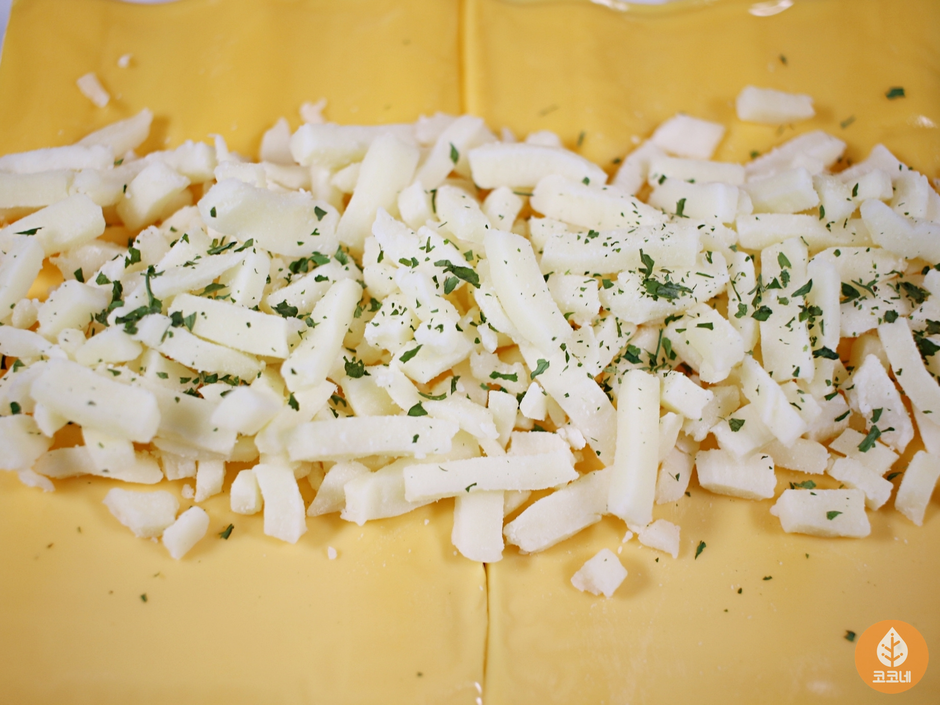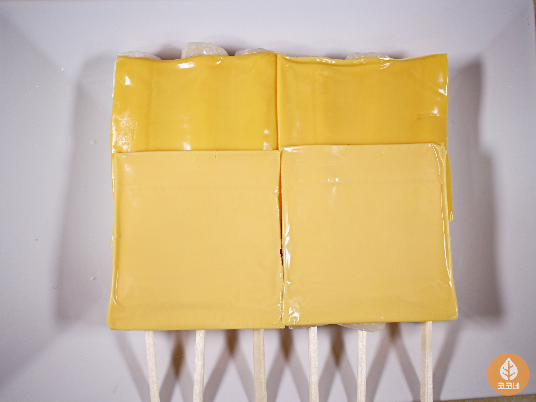 슬라이스치즈로 빈틈없이 덮어주세요.