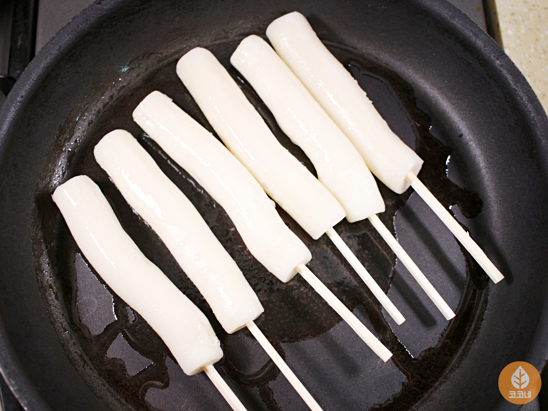 나무젓가락에 가래떡을 꽂아서 구워주세요.