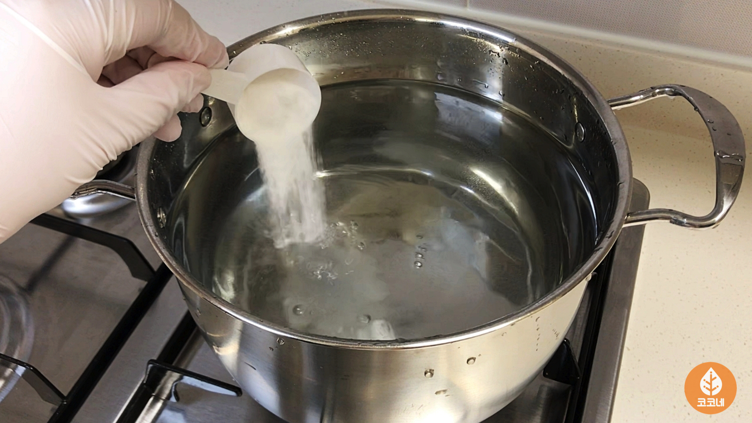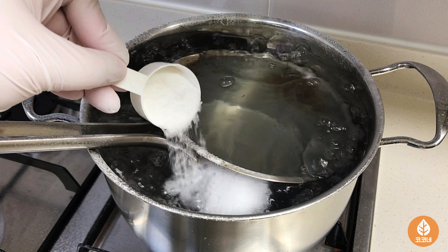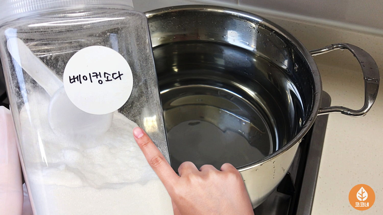베이킹소다의 흔적을 씻어내는 과정이고요.