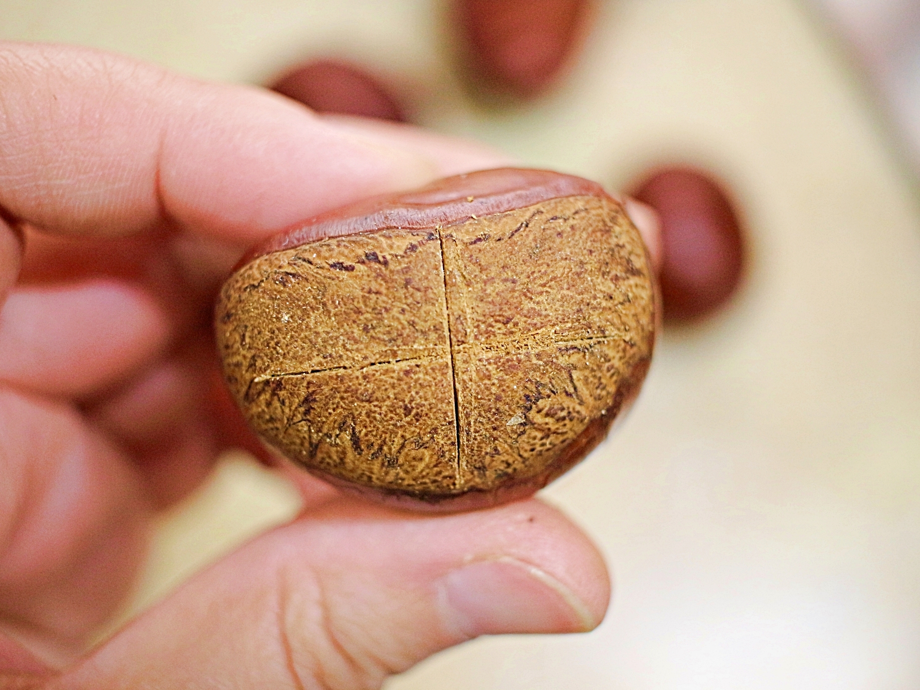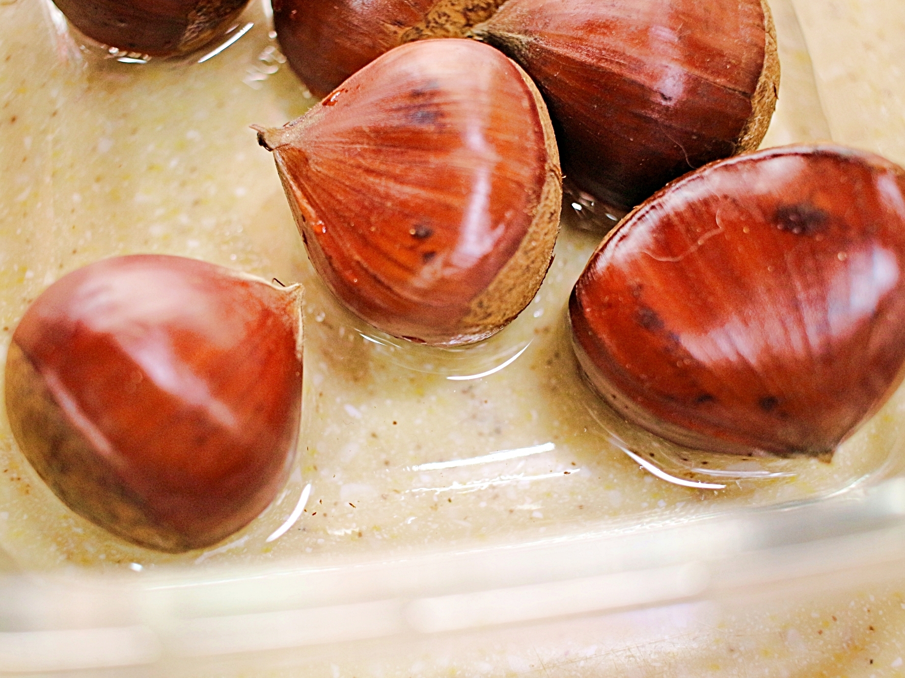 칼집 낸 부분이 벌어져서 껍질도 손쉽게 벗겨져요.