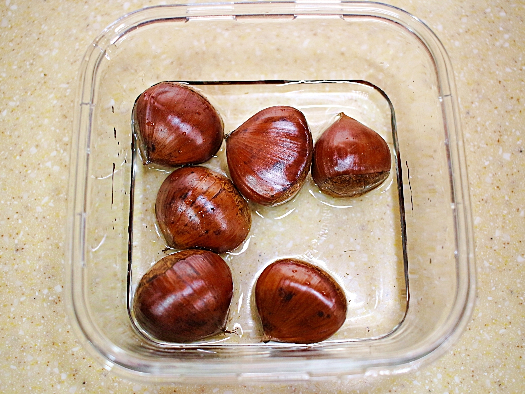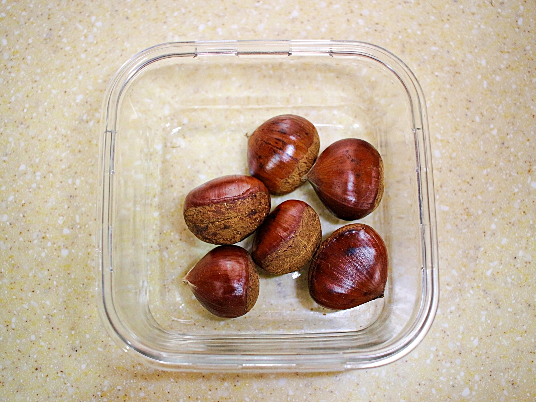 내열용기에 밤을 담고 물을 아주 조금만 부어주세요.