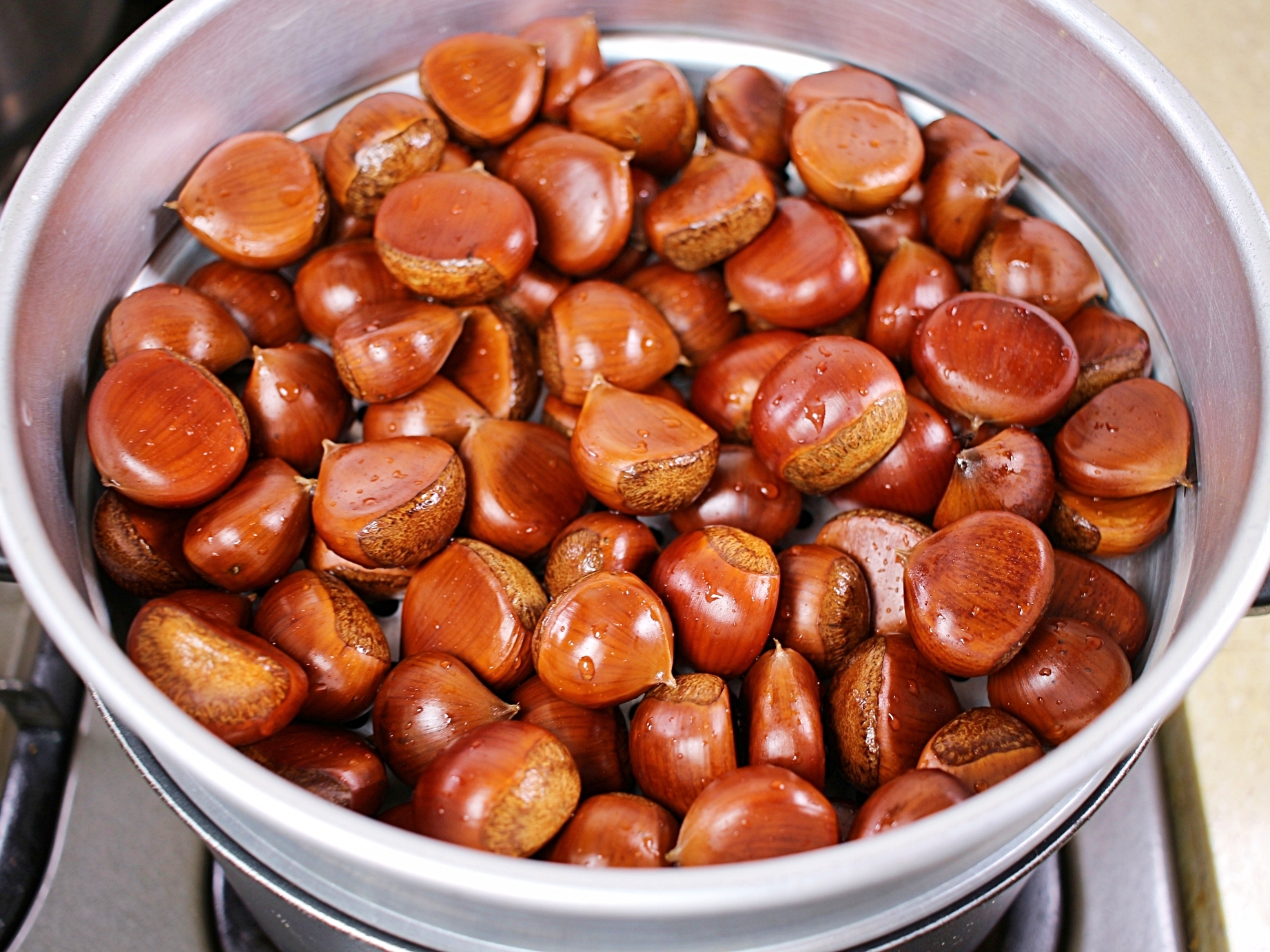 달콤한 향이 퍼지면서 찐밤이 완성됐어요.