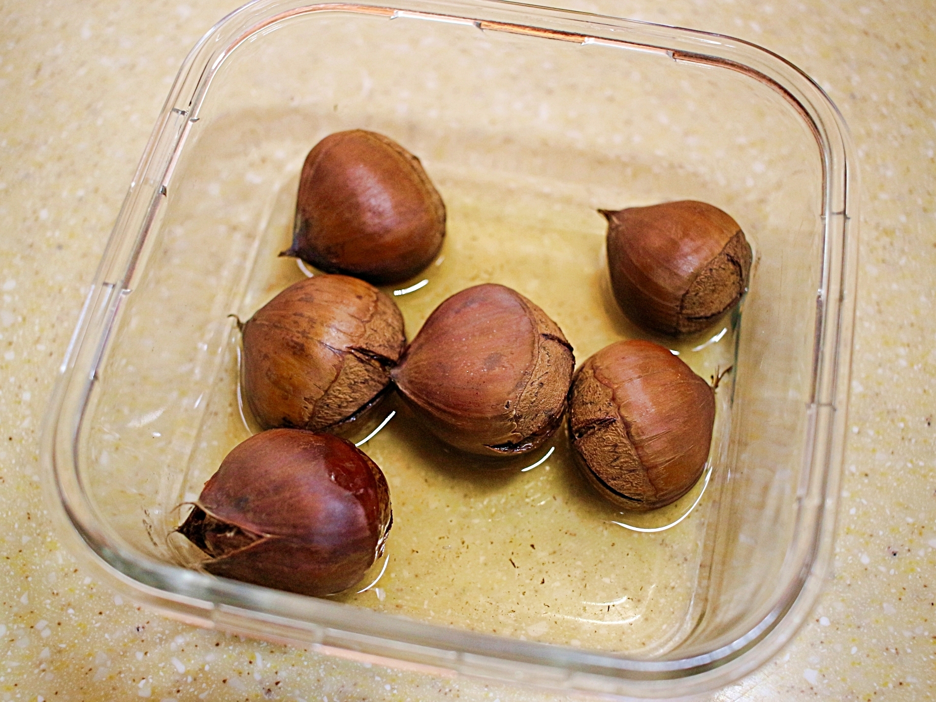 내열용기에 밤을 담고 물을 아주 조금만 부어주세요.