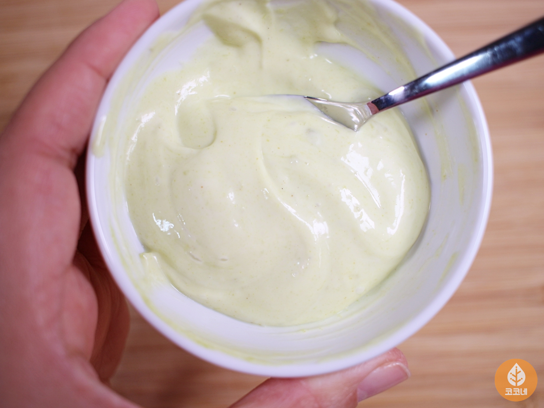 마요네즈 2큰술에 고추냉이 1티스푼을 섞어요.