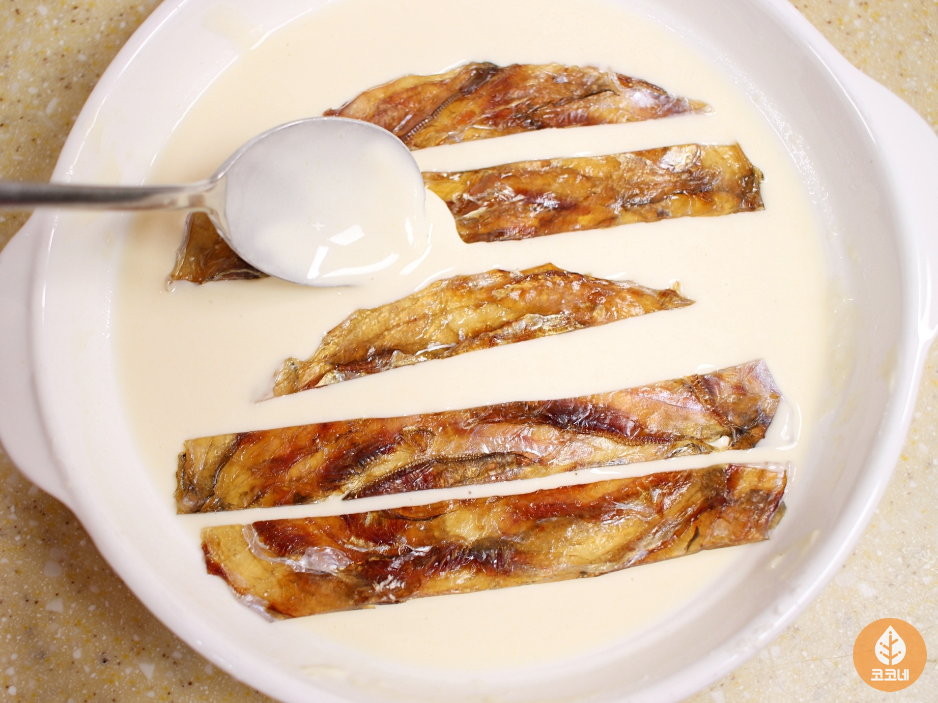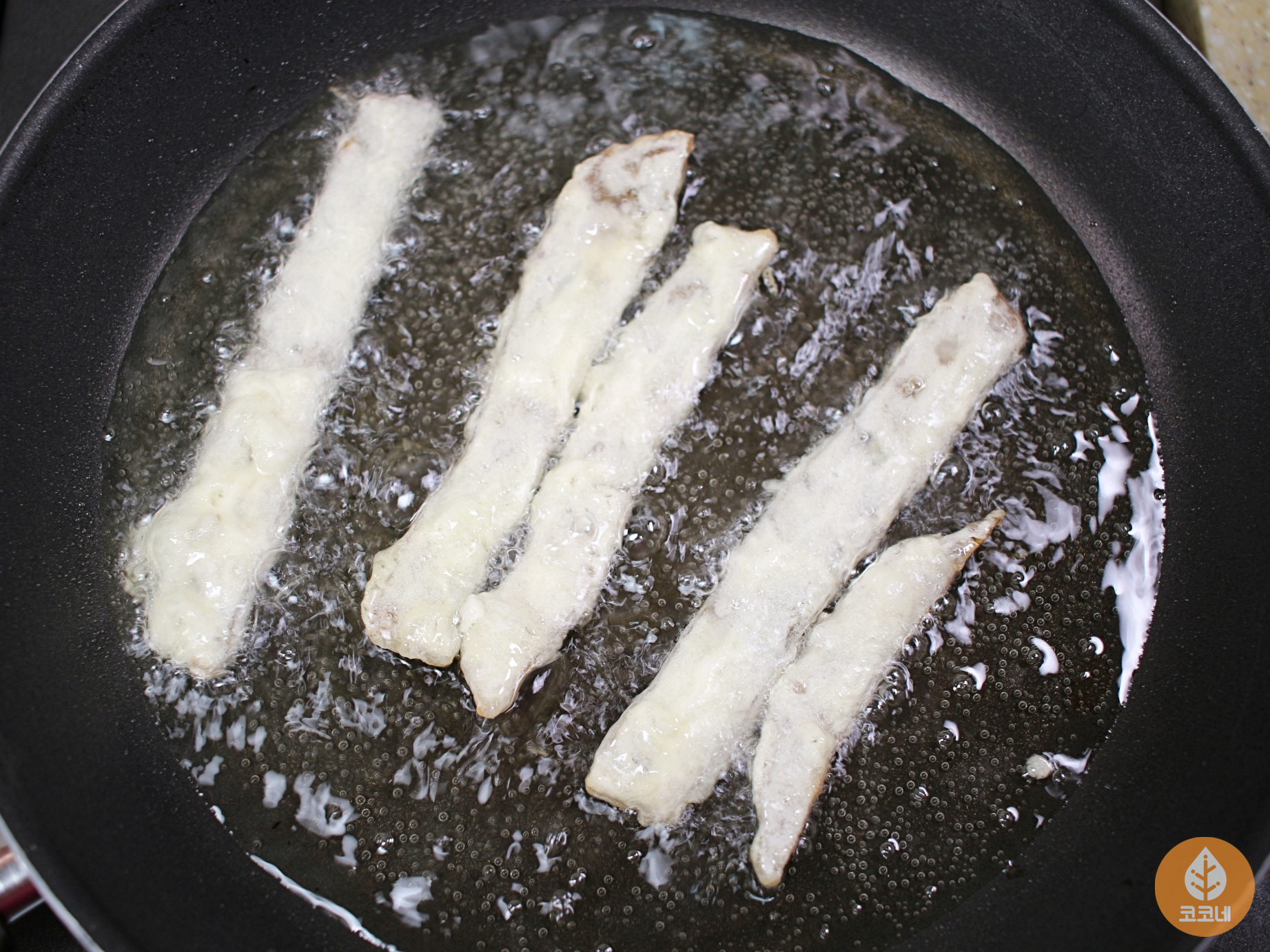 쥐포에 골고루 묻혀서 튀겨주세요.