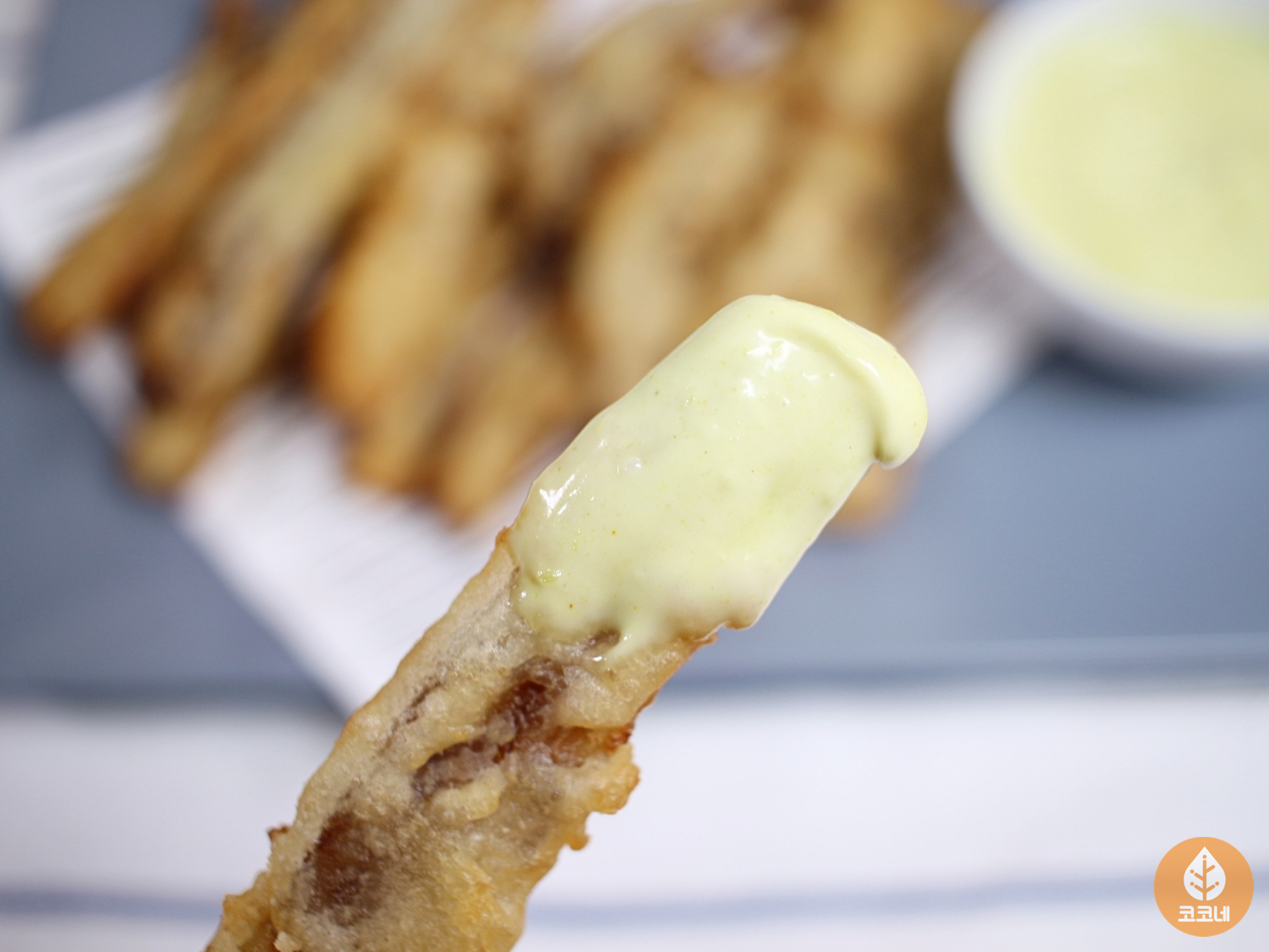 바삭한 튀김옷을 입히니까 맛이 환상이네요.