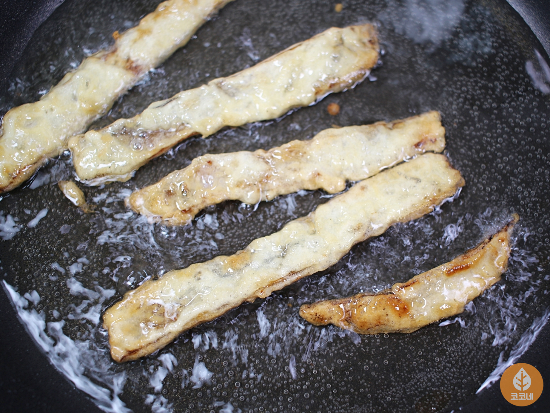 쥐포에 골고루 묻혀서 튀겨주세요.