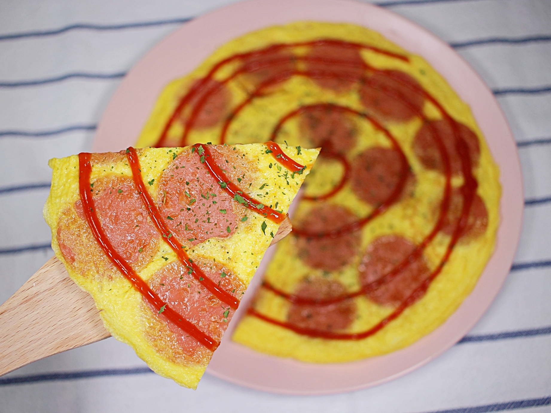 계란물을 부어서 피자처럼 만들어보세요.