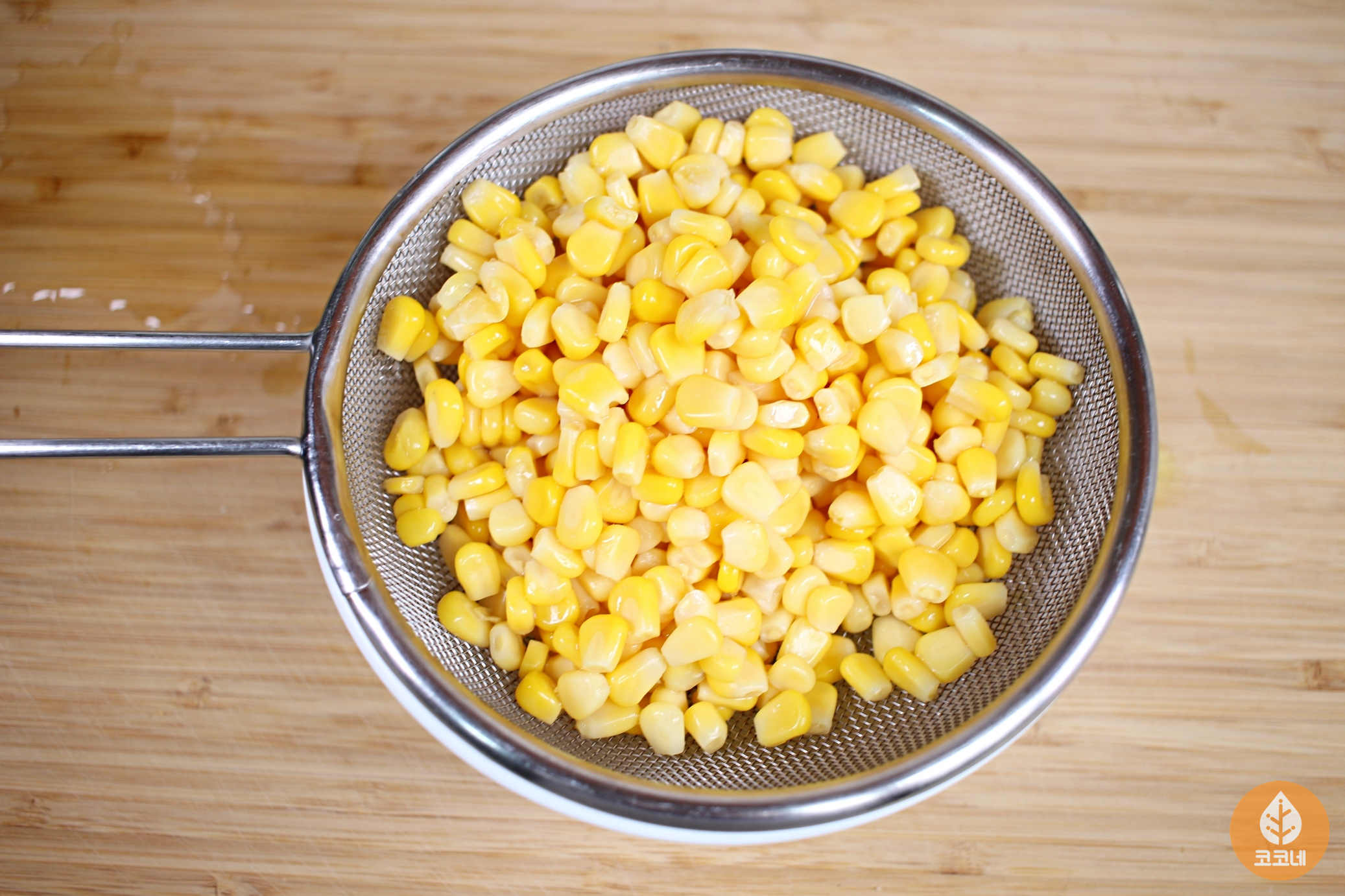 캔옥수수 체에 받쳐서 물기를 빼 주시고요.