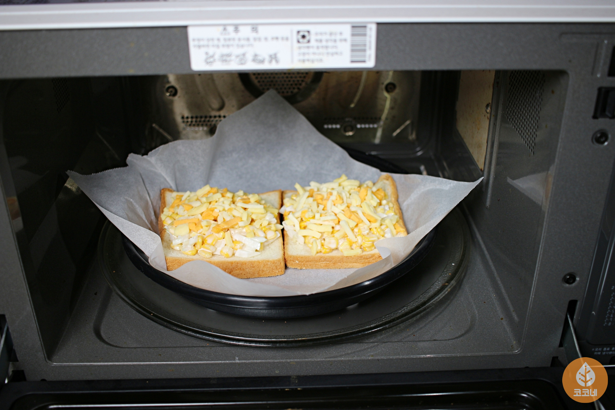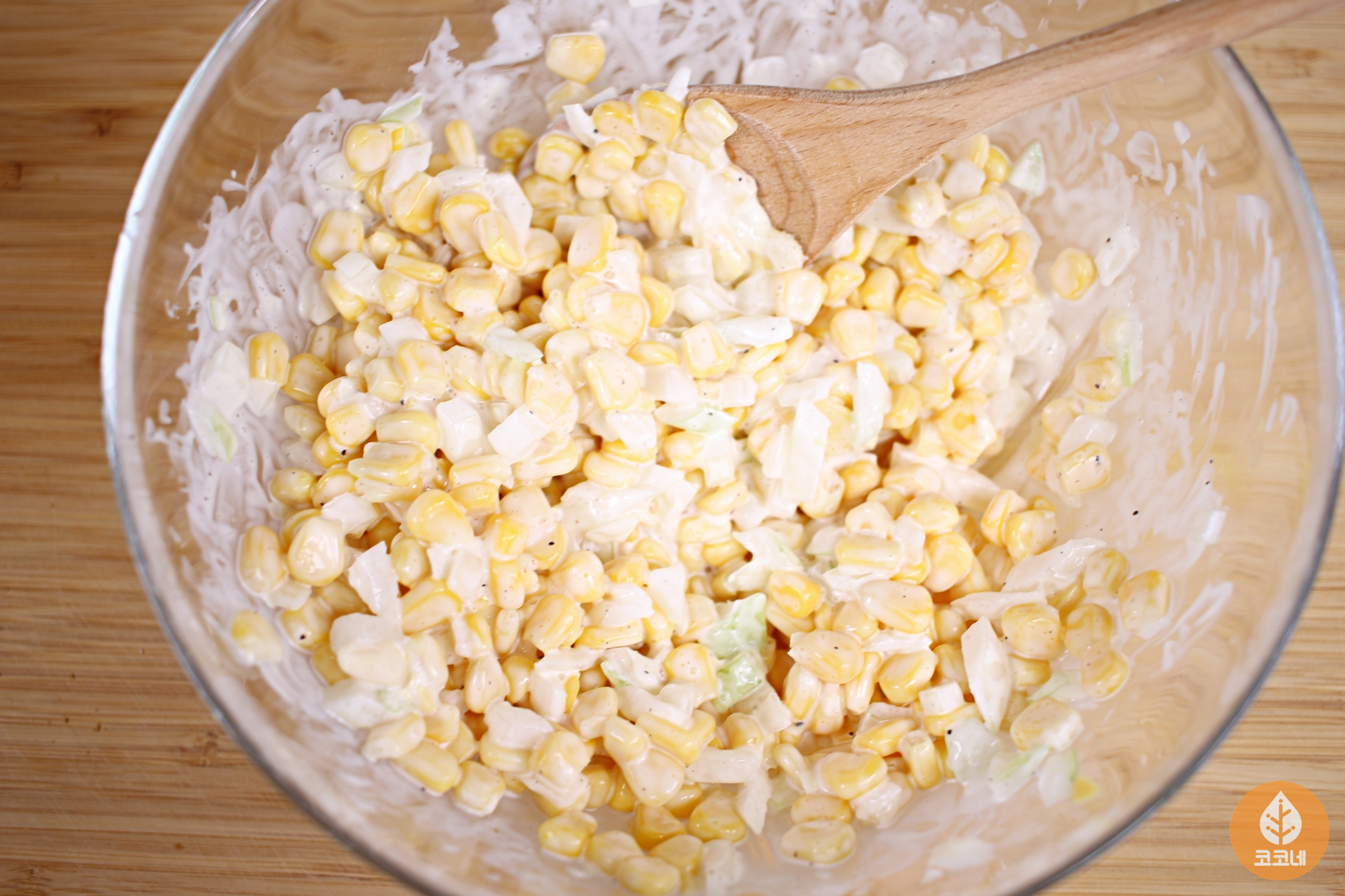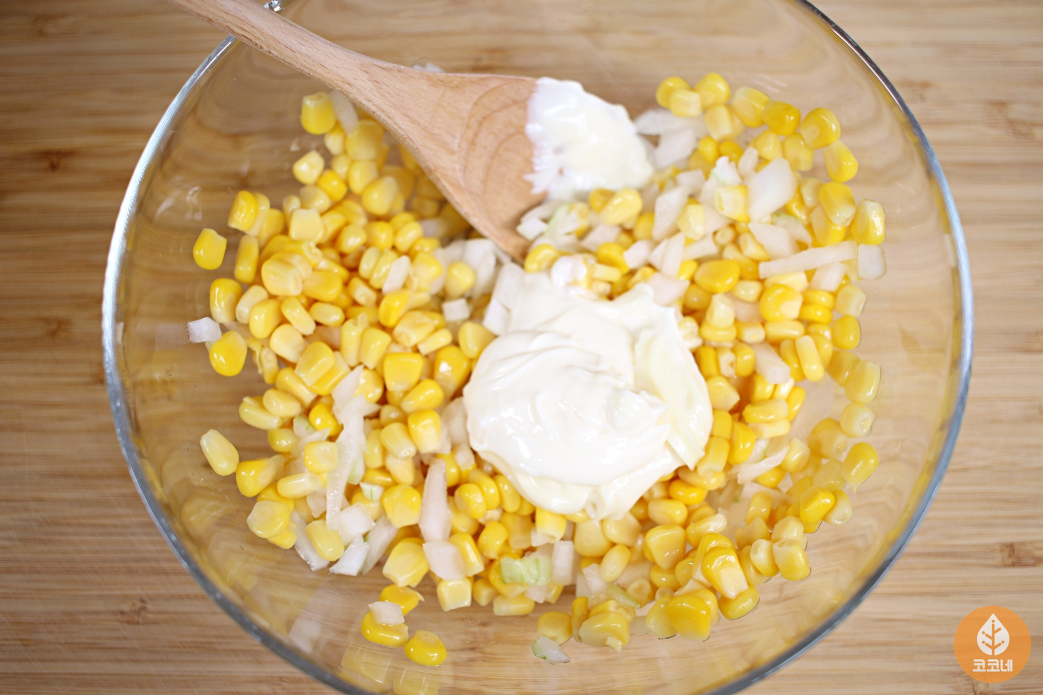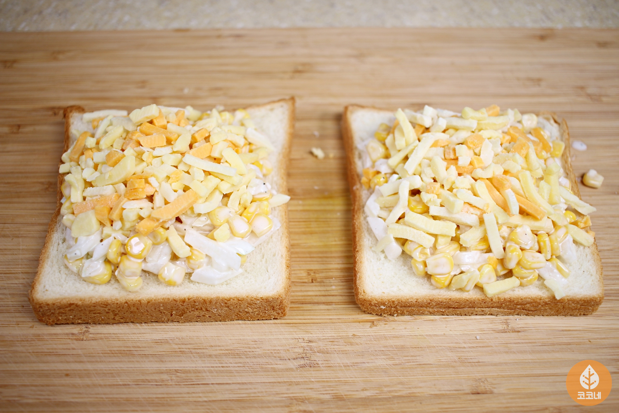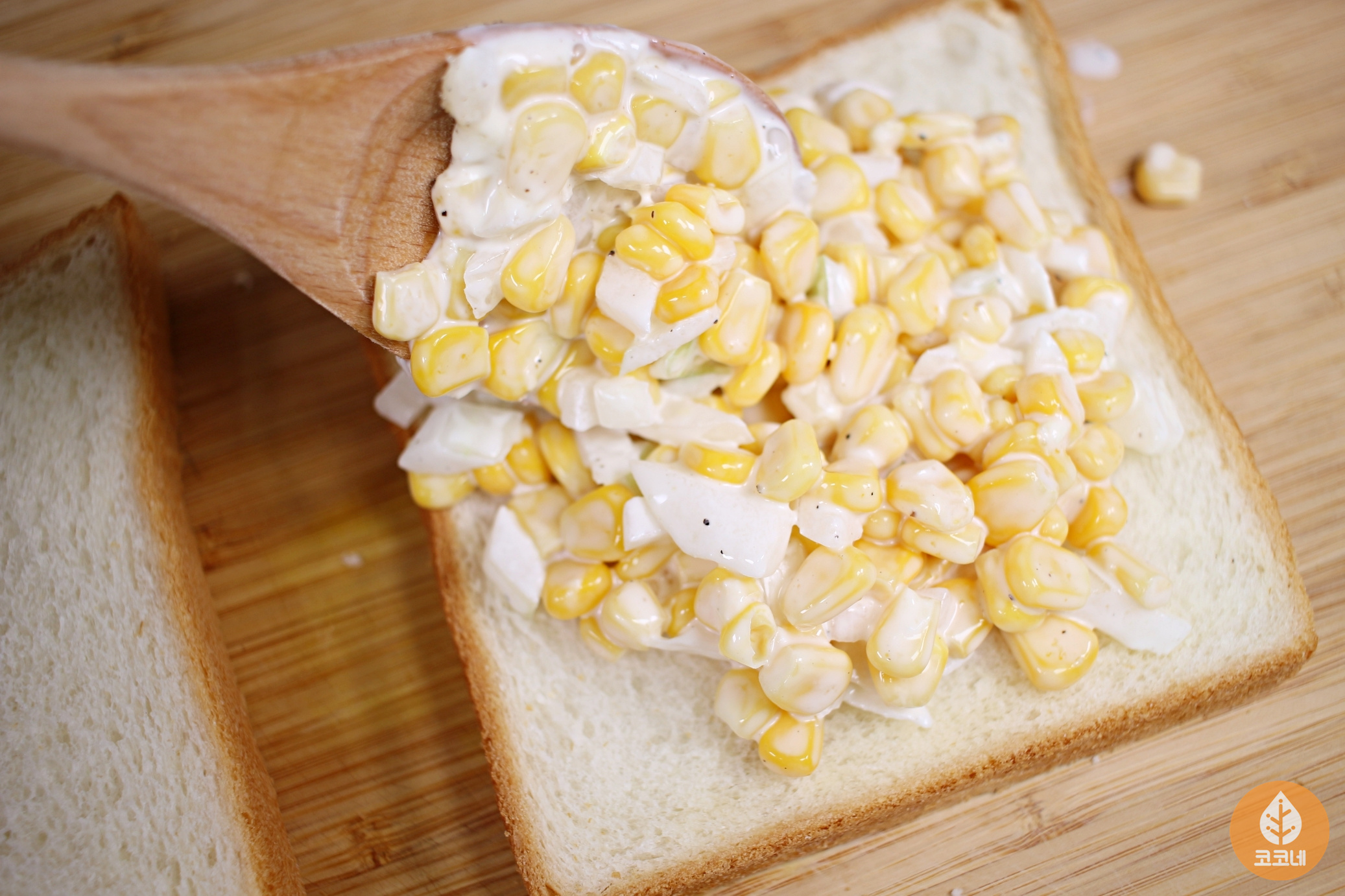식빵 위에 콘샐러드 넉넉하게 올려주시고요.