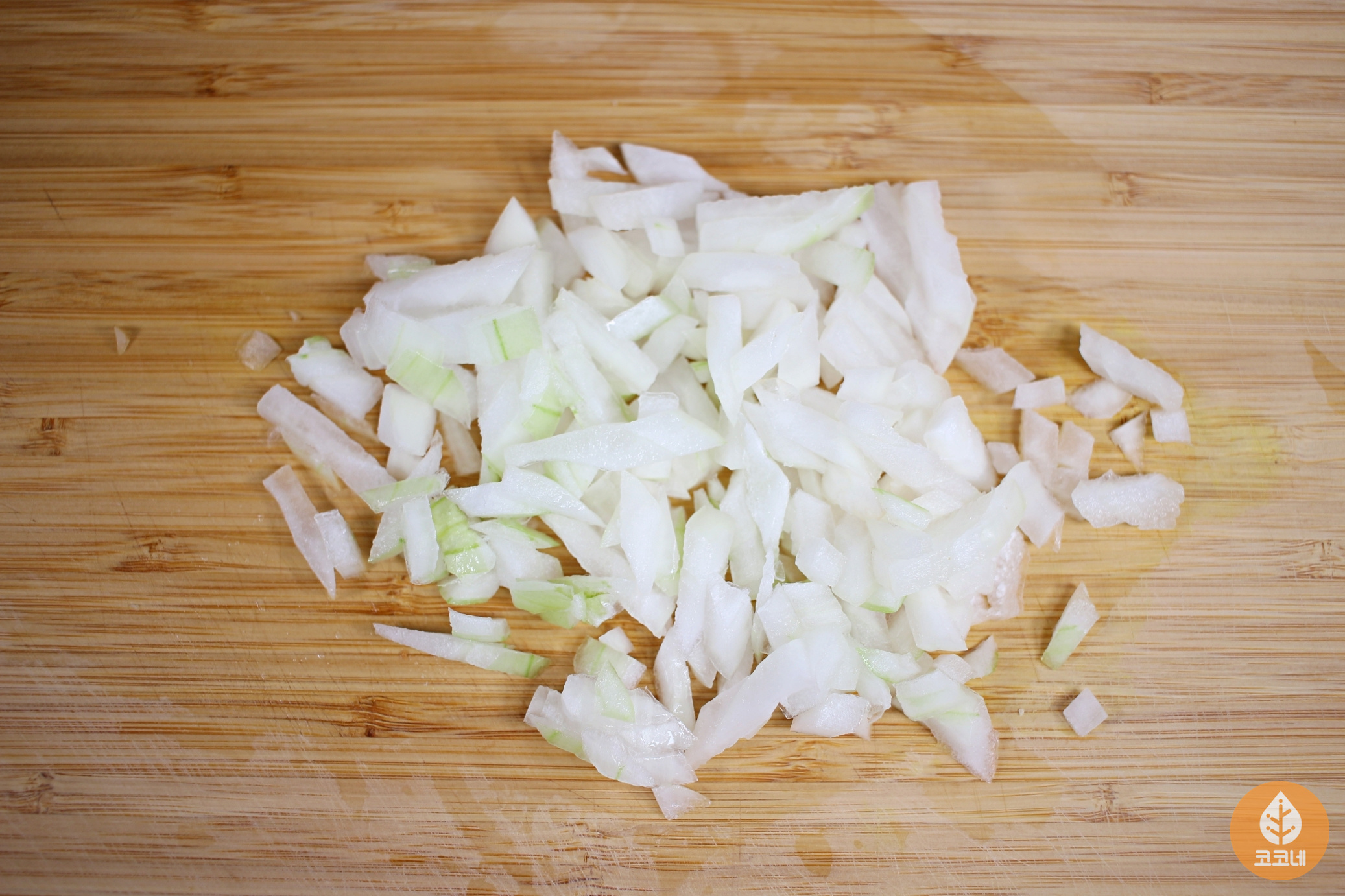양파는 옥수수랑 같은 크기로 잘게 썰어주세요.