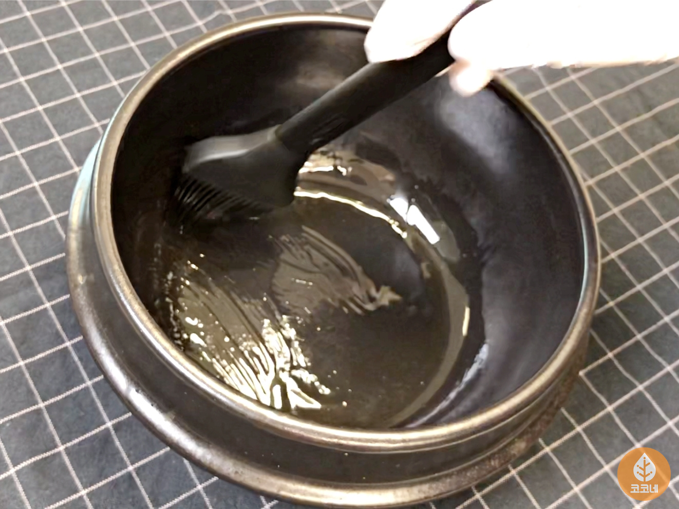 뚝배기에 참기름을 얇게 발라주시고요.