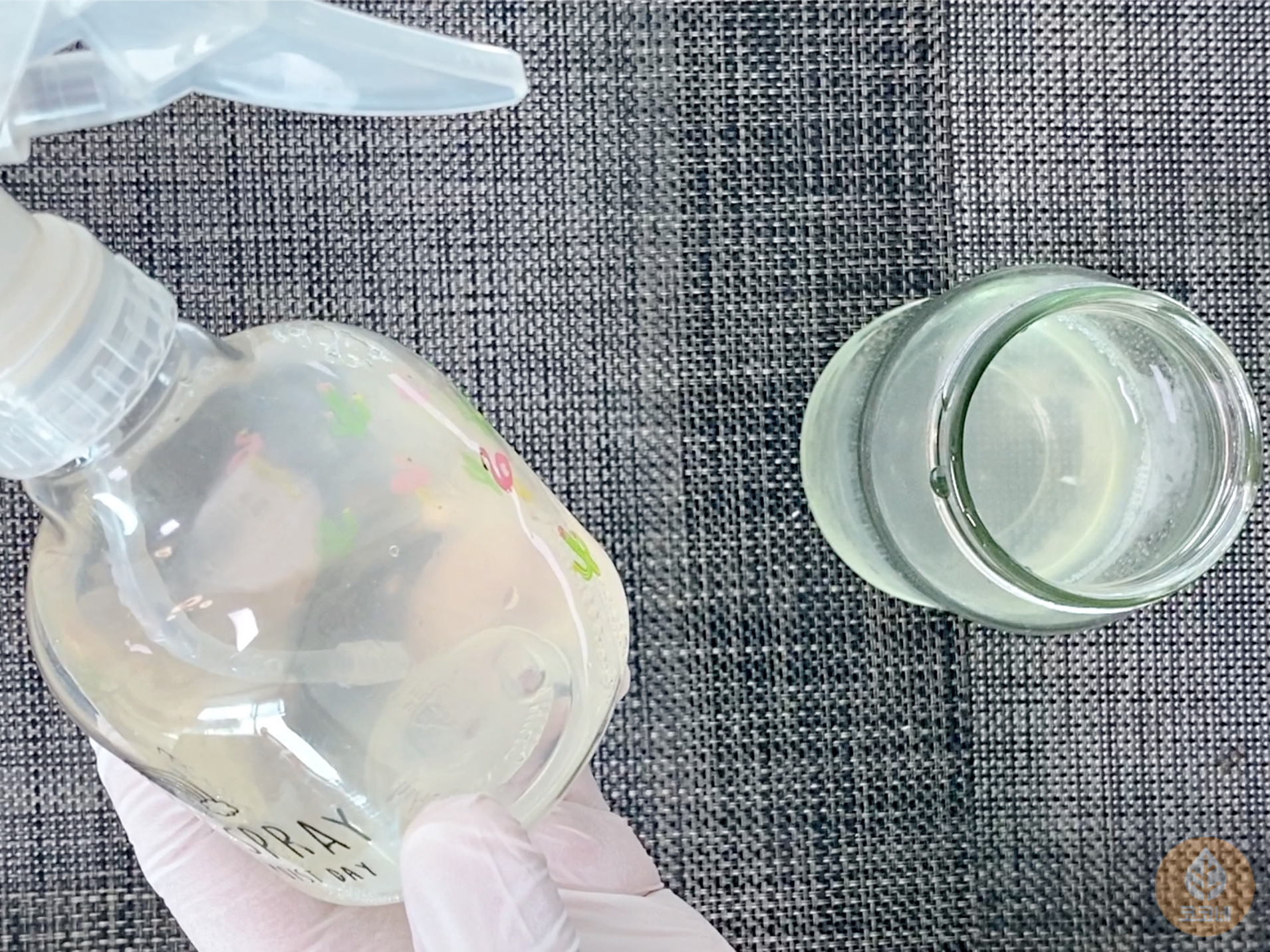 쓰기 편하게 분무기에 담았어요.
