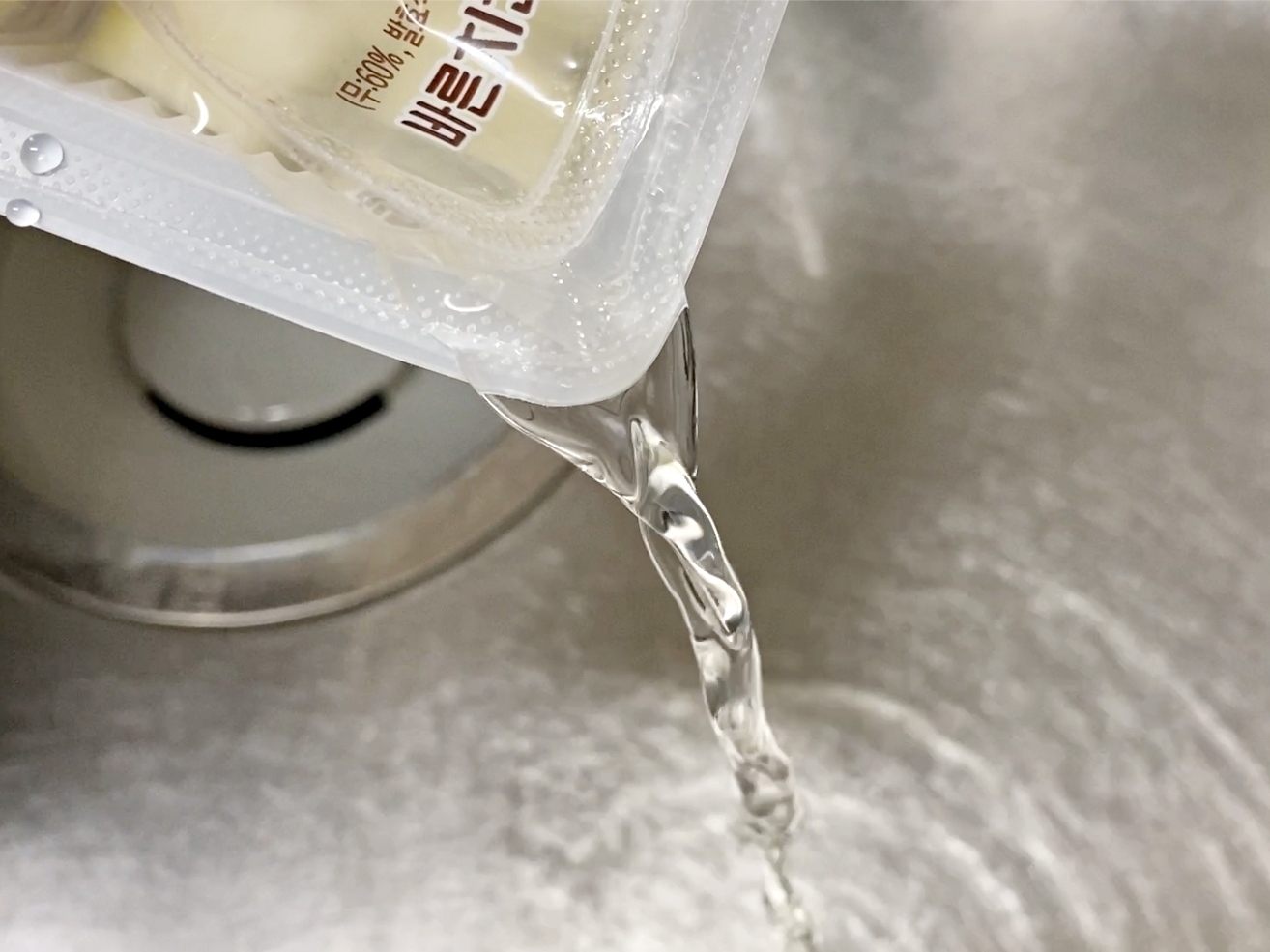 치킨무 국물이 배수구를 훑고 지나가면서