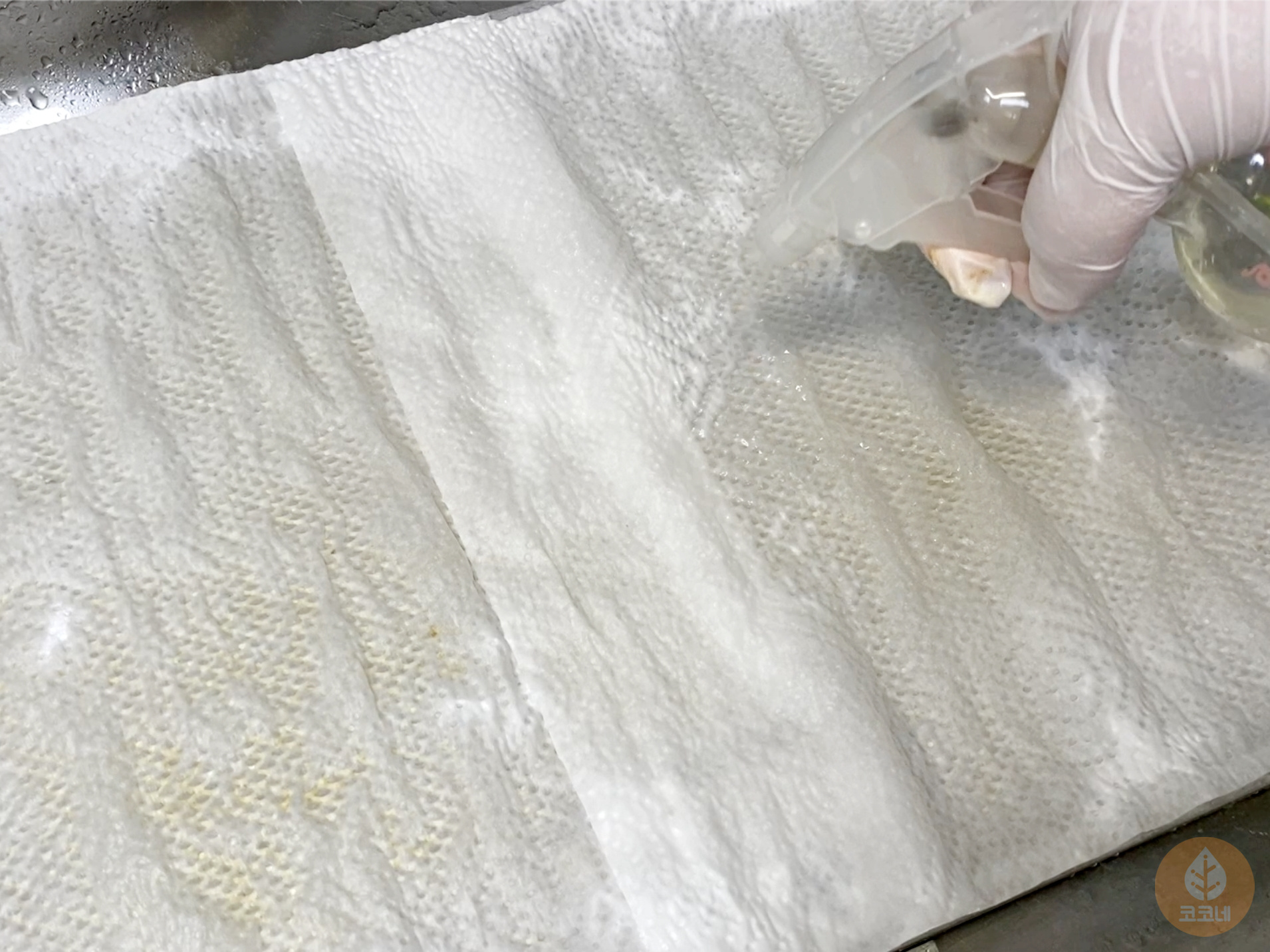 키친타월 붙이고 치킨무국물 뿌린 다음