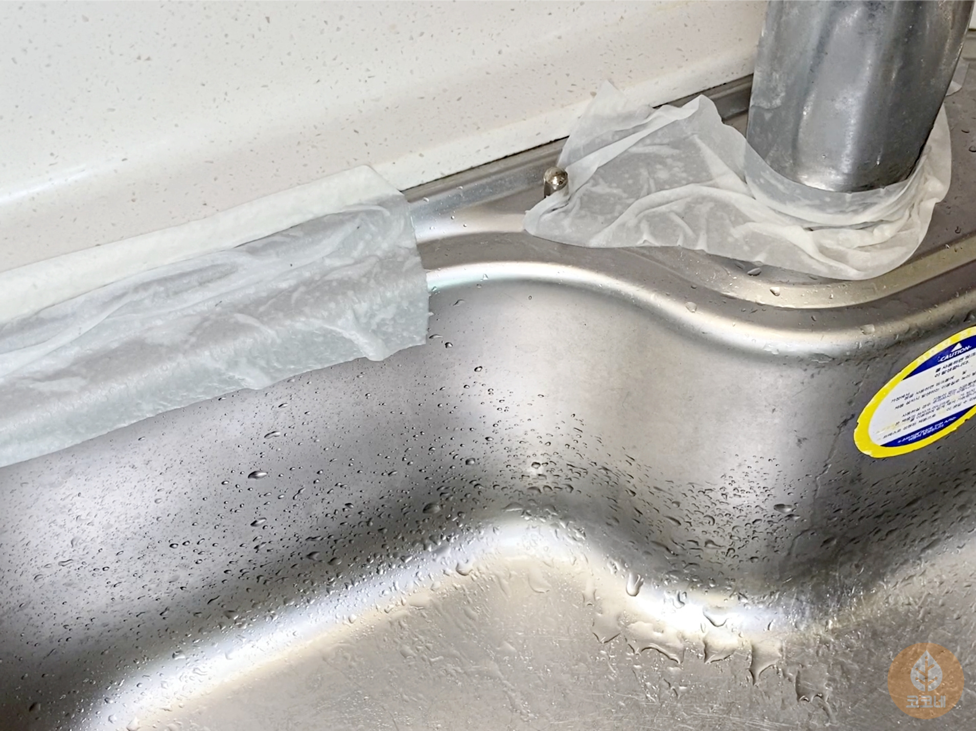 특히 스테인리스 재질의 싱크대는 하얀 물얼룩이 말썽인데요.