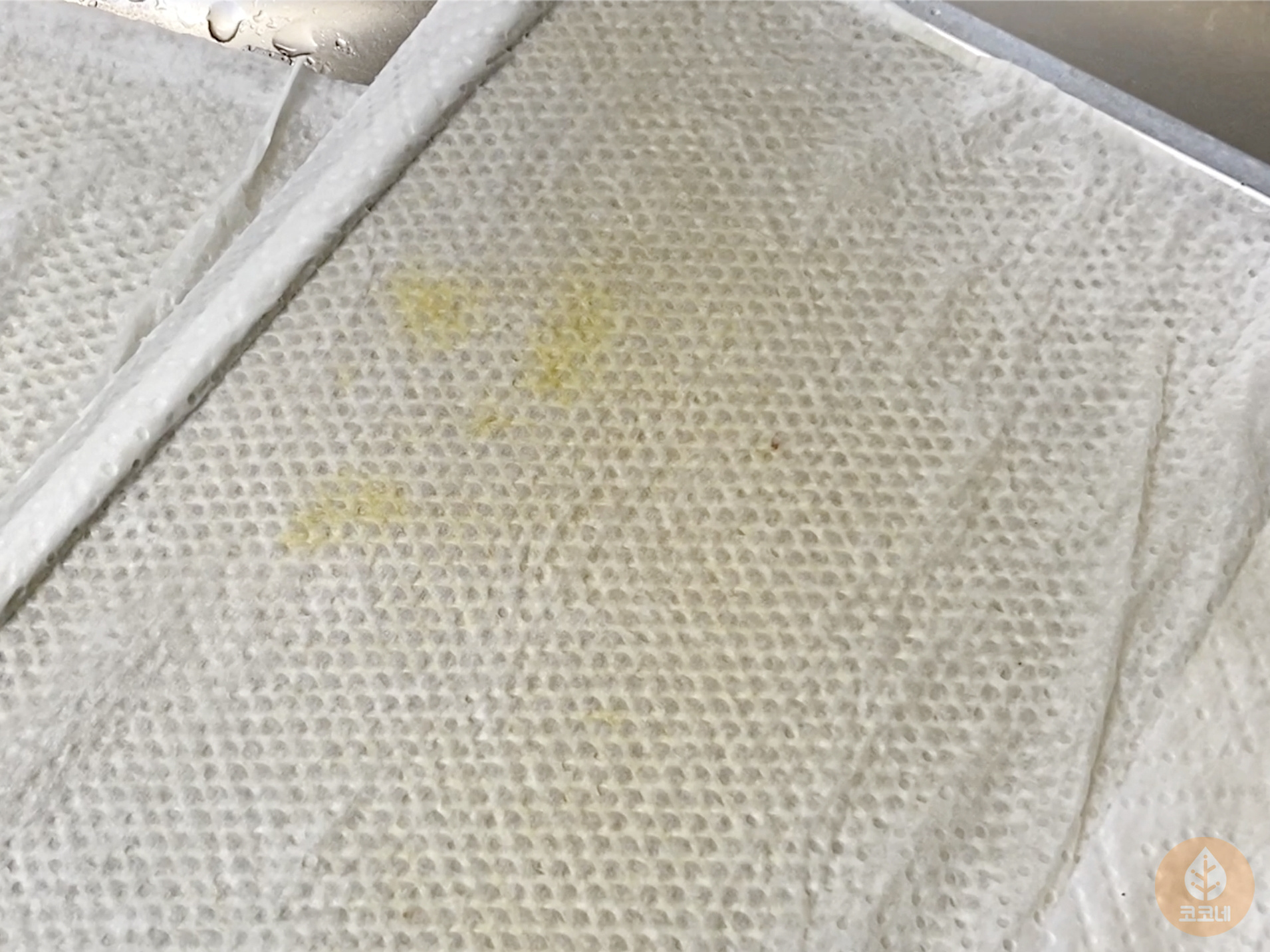키친타월 붙이고 치킨무국물 뿌린 다음