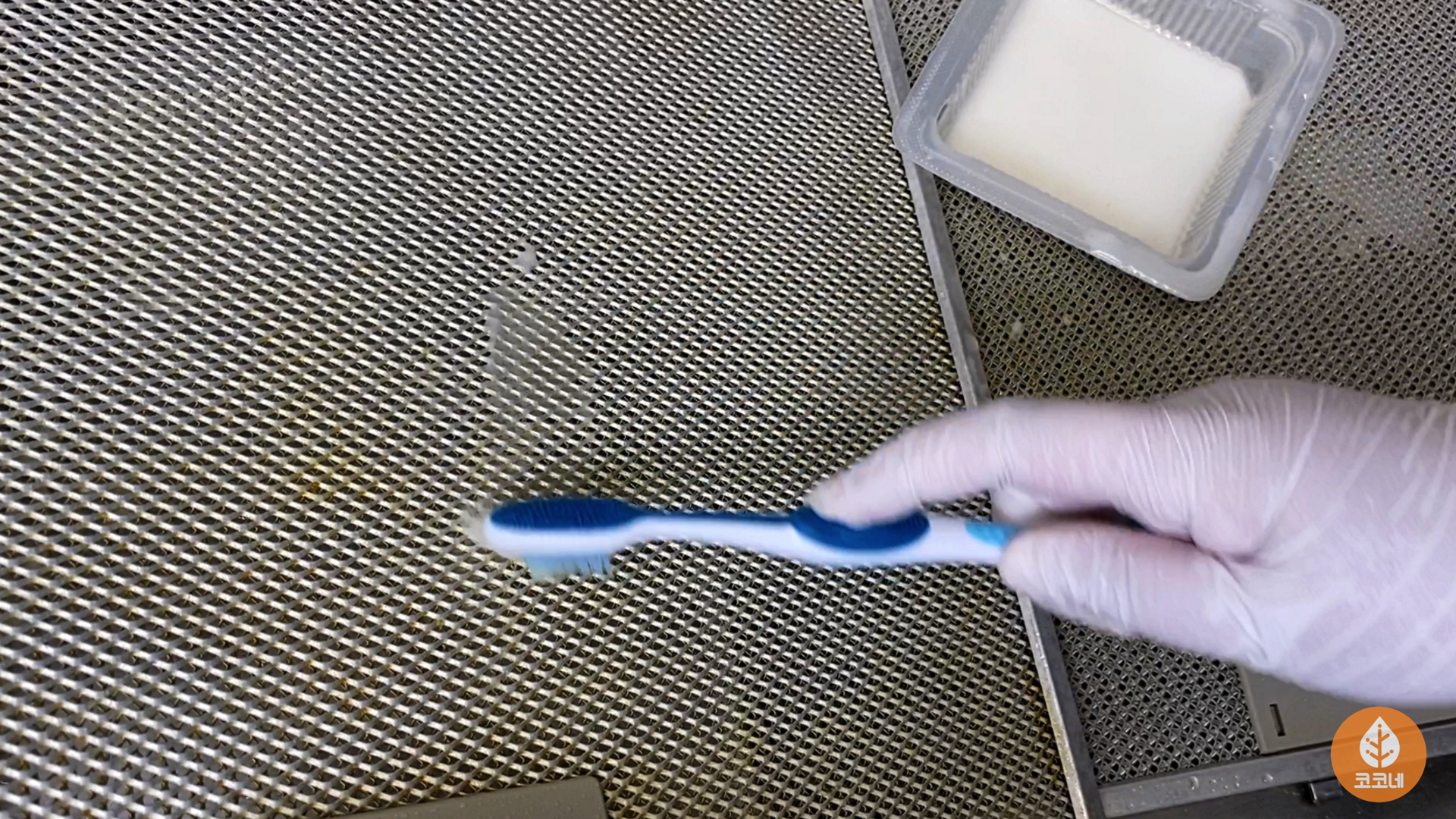 이 세제를 주방후드필터에 골고루 바르고