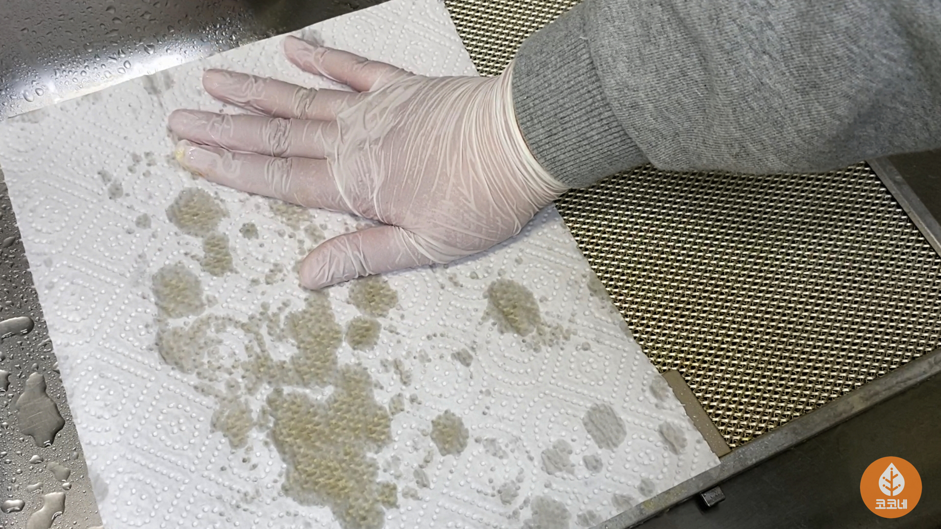 중간에 키친타월이 살짝 말랐을 때