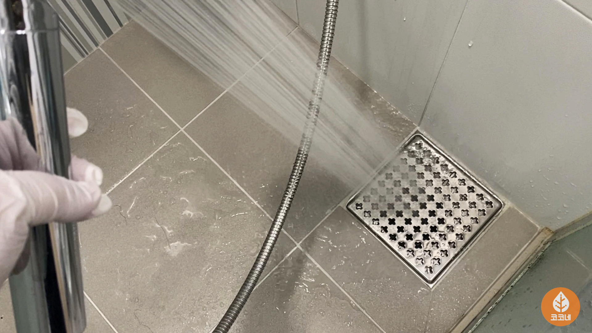 샤워기로 뜨거운물을 뿌리면