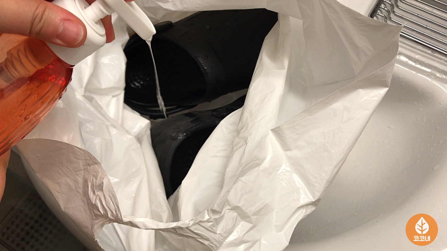 그리고 비닐봉지에 크록스를 담아요.