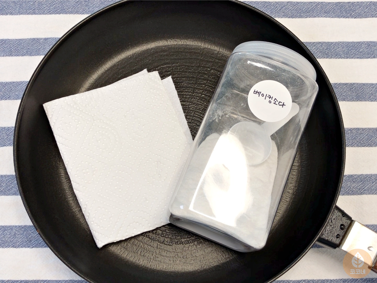 냄비나 후라이팬 바닥과 탄 자국 사이에