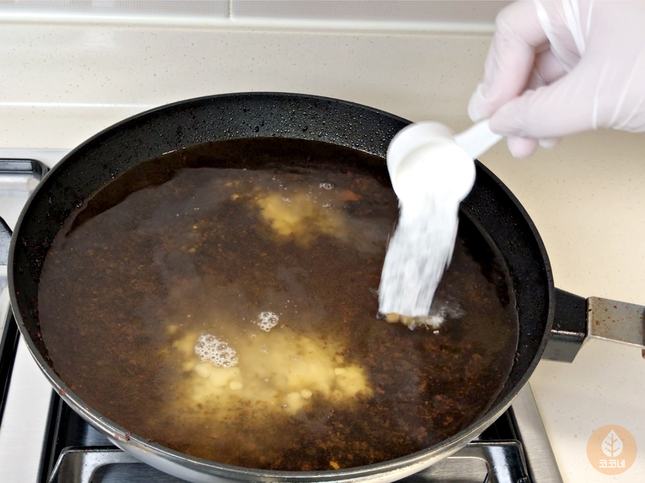 베이킹소다를 넣고 끓이면 이산화탄소가 발생해요.