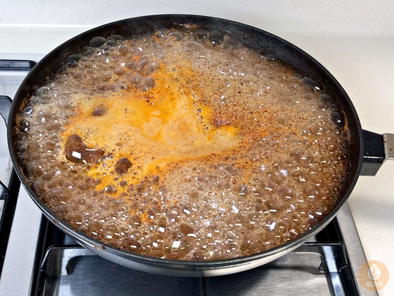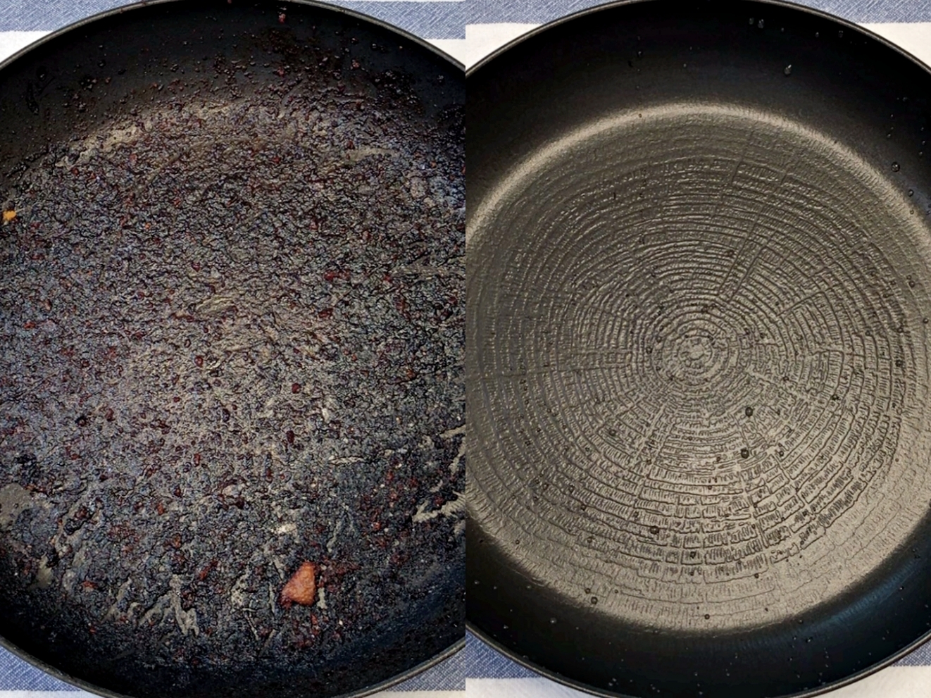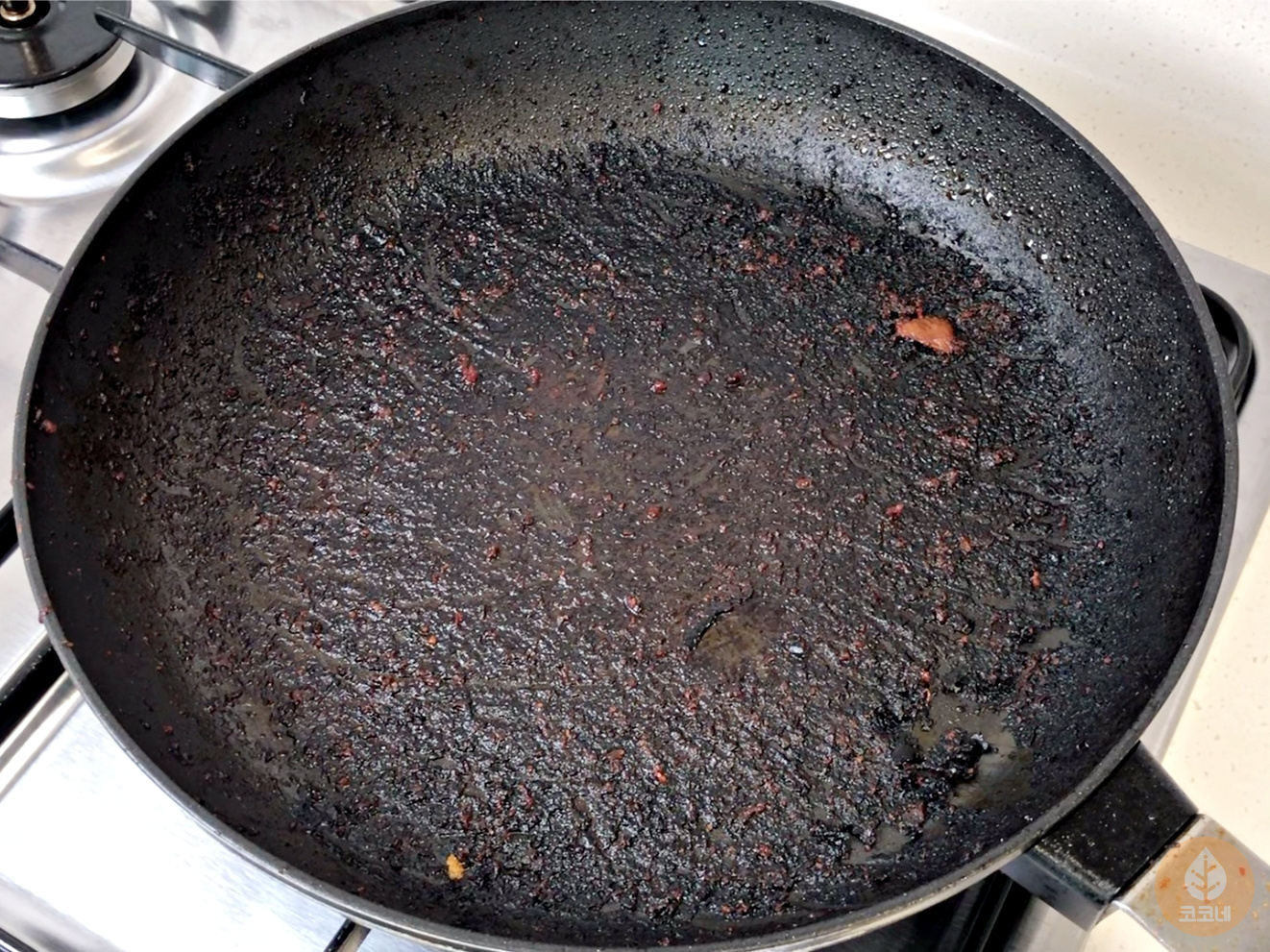 냄비나 후라이팬 바닥과 탄 자국 사이에
