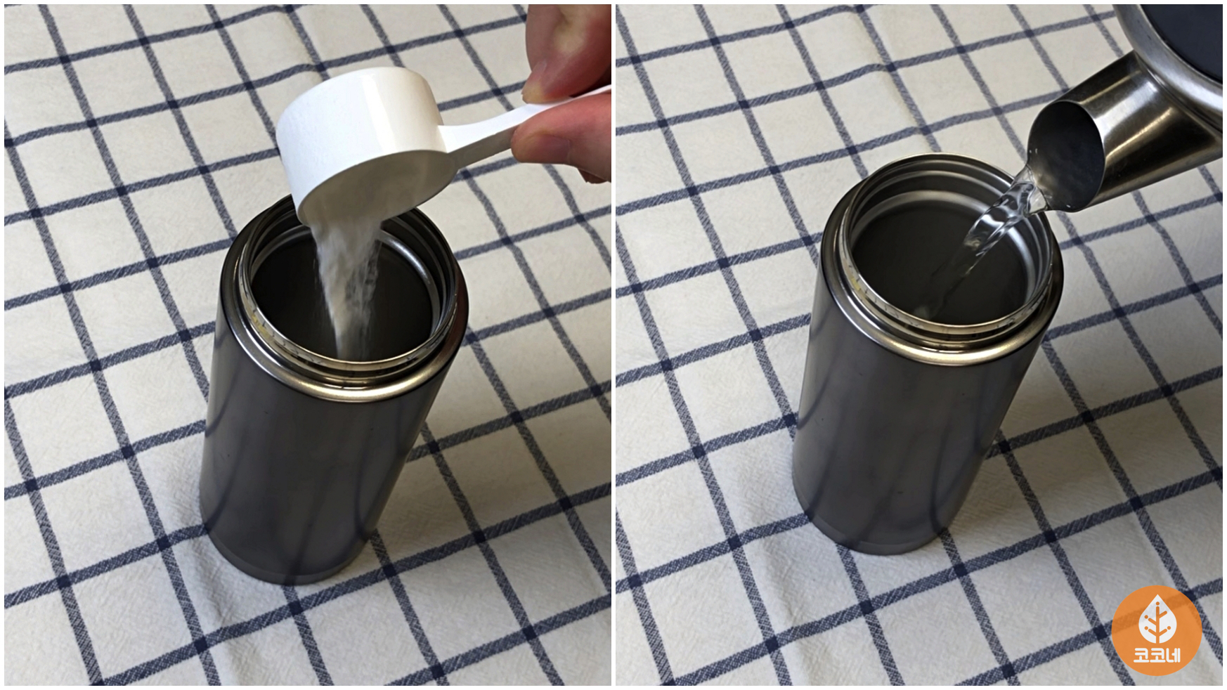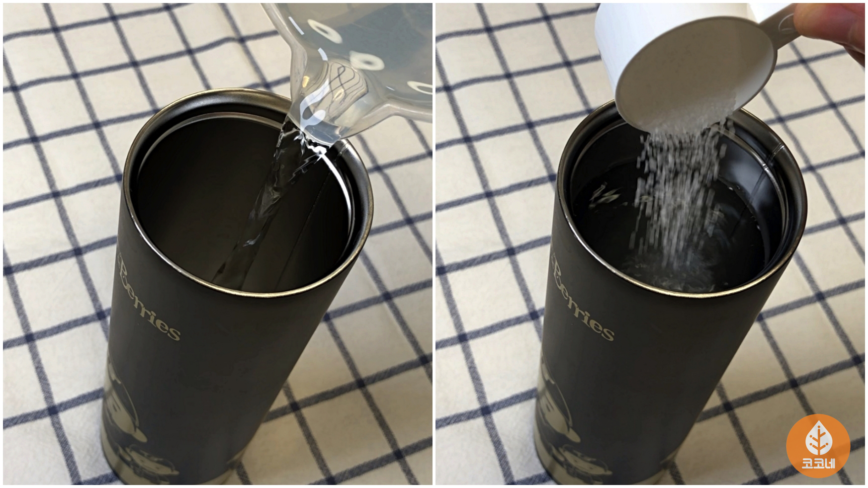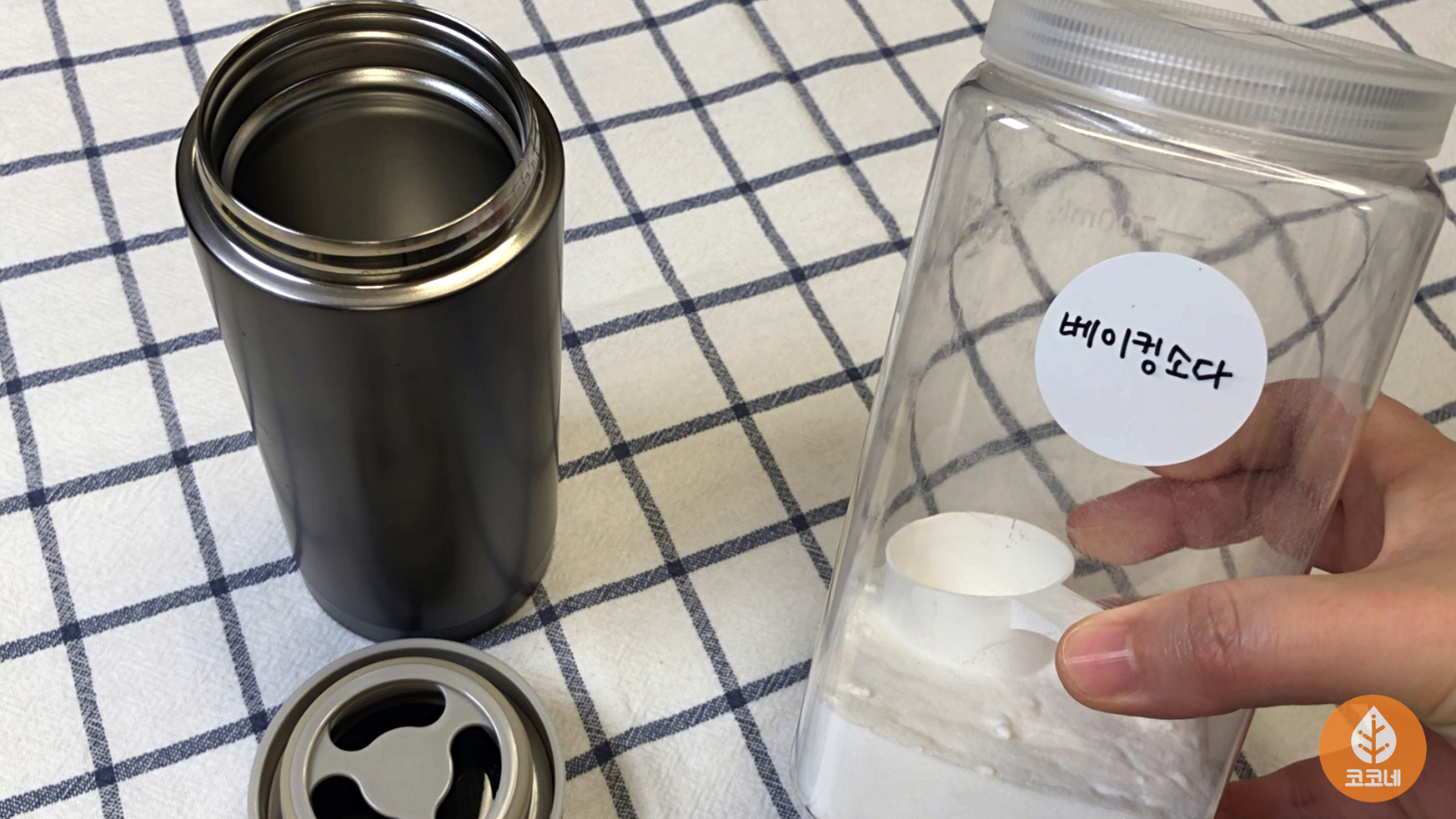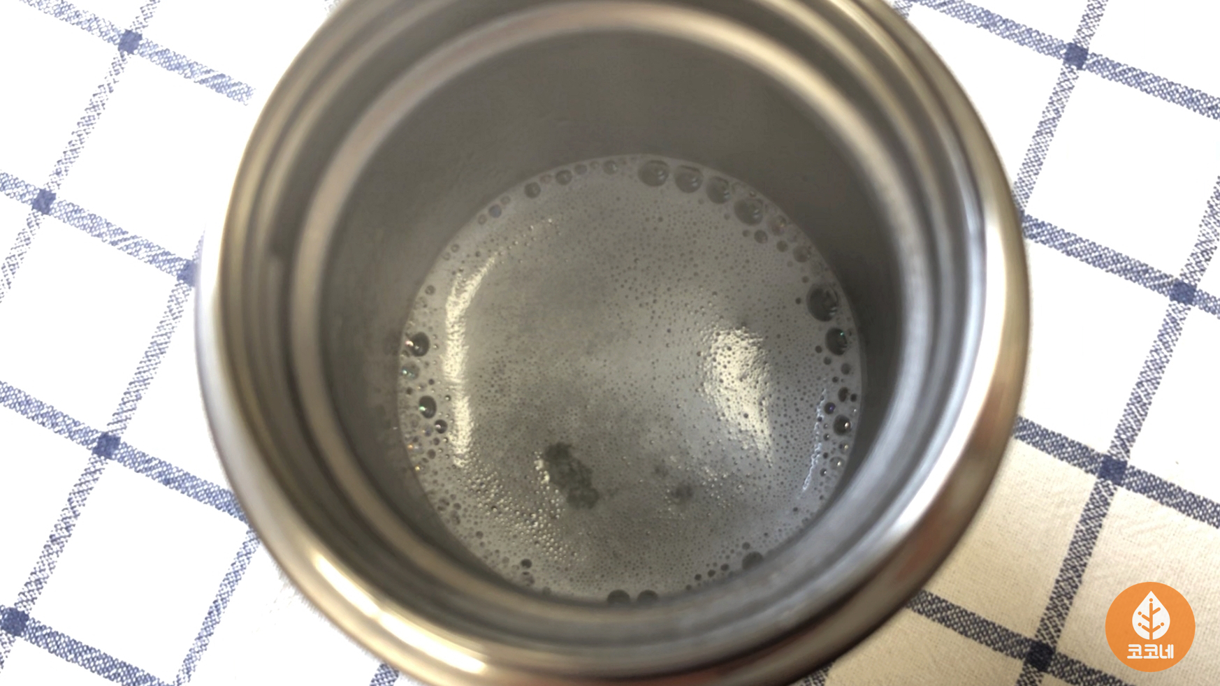 텀블러에 베이킹소다를 넉넉하게 1큰술과