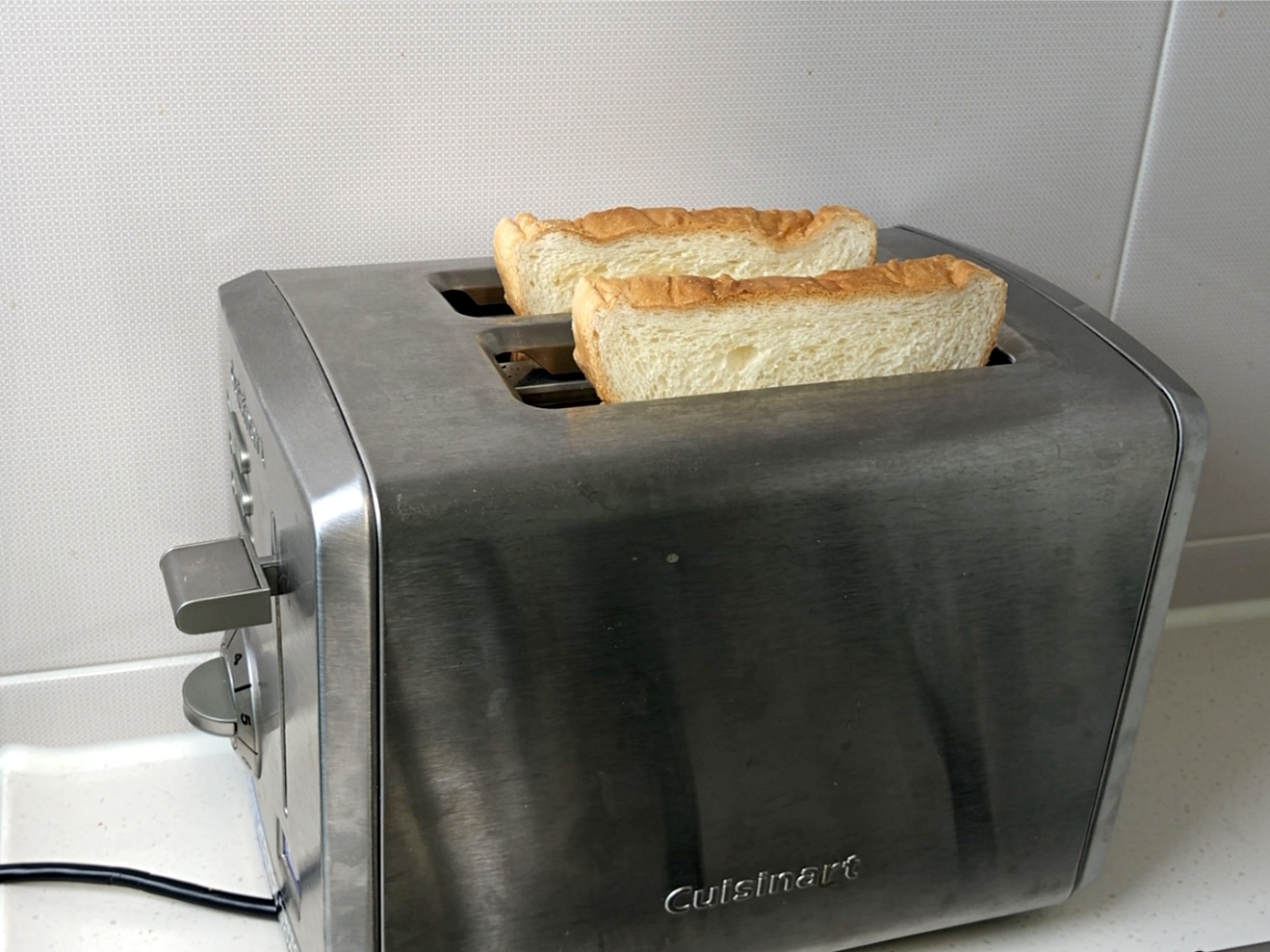 토스터기를 뒤집어서 빵가루를 털어봤어요.