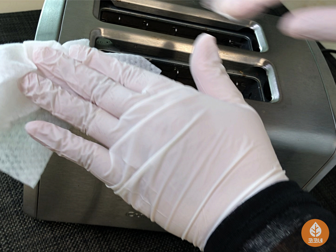 토스터기 내부를 조심스럽게 닦아줄게요.