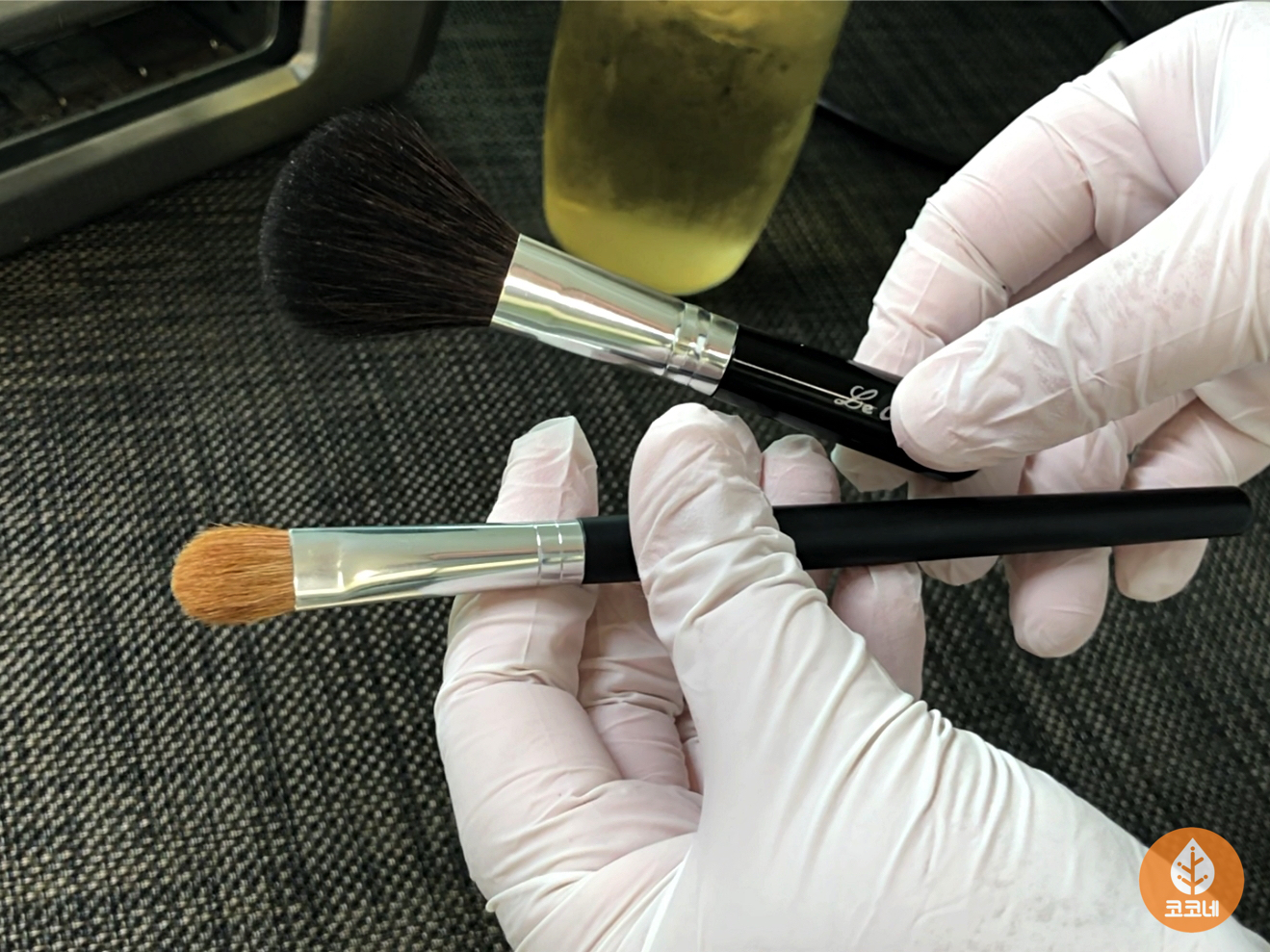 화장용브러시와 식초로