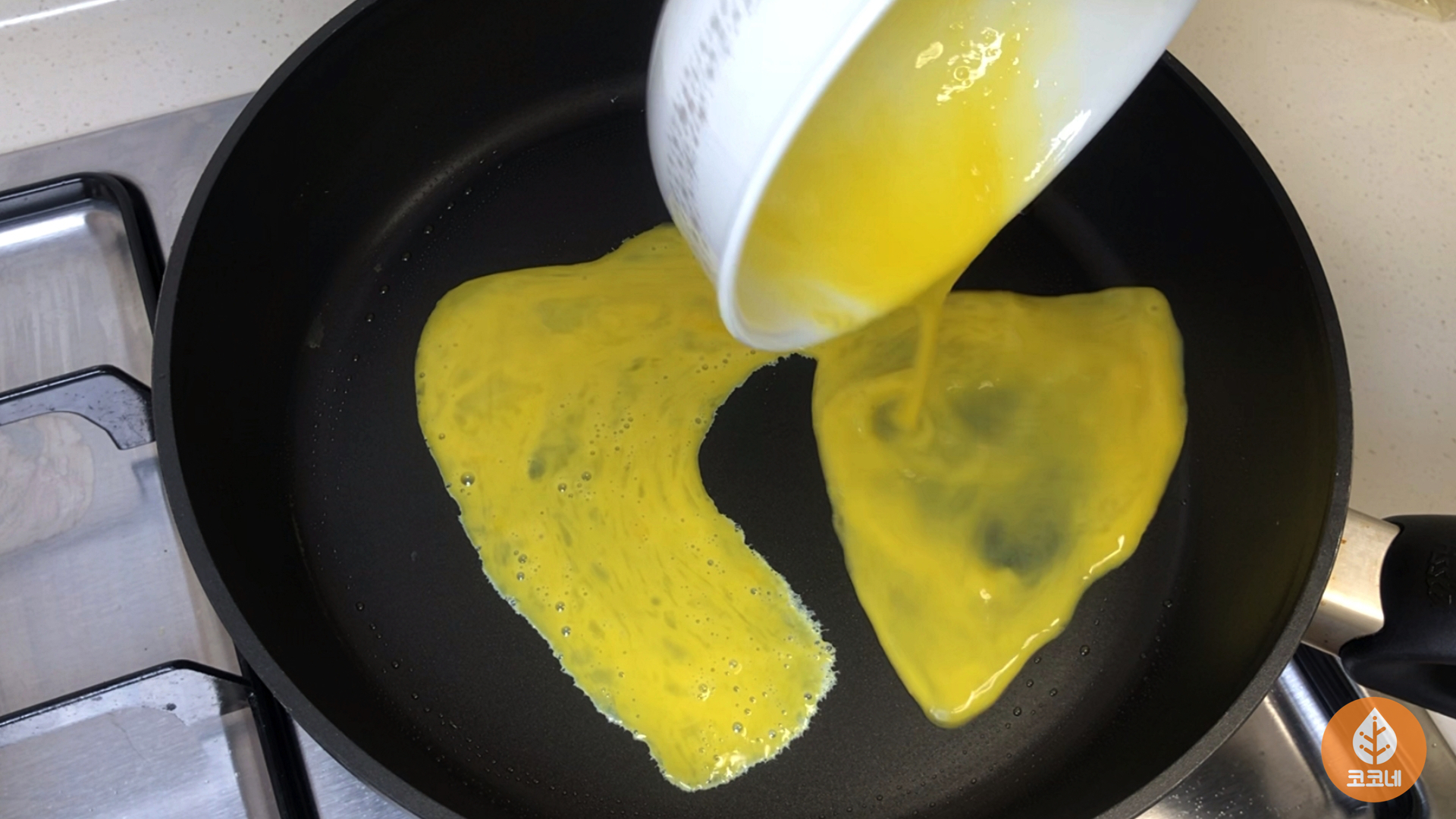순서를 바꿔서 먼저 달걀물을 부었어요.