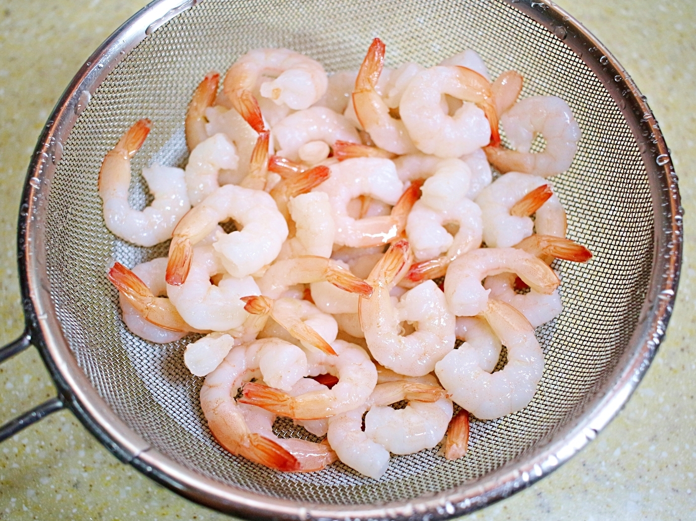 칵테일새우를 물로 깨끗하게 씻어서 물기를 빼주세요.