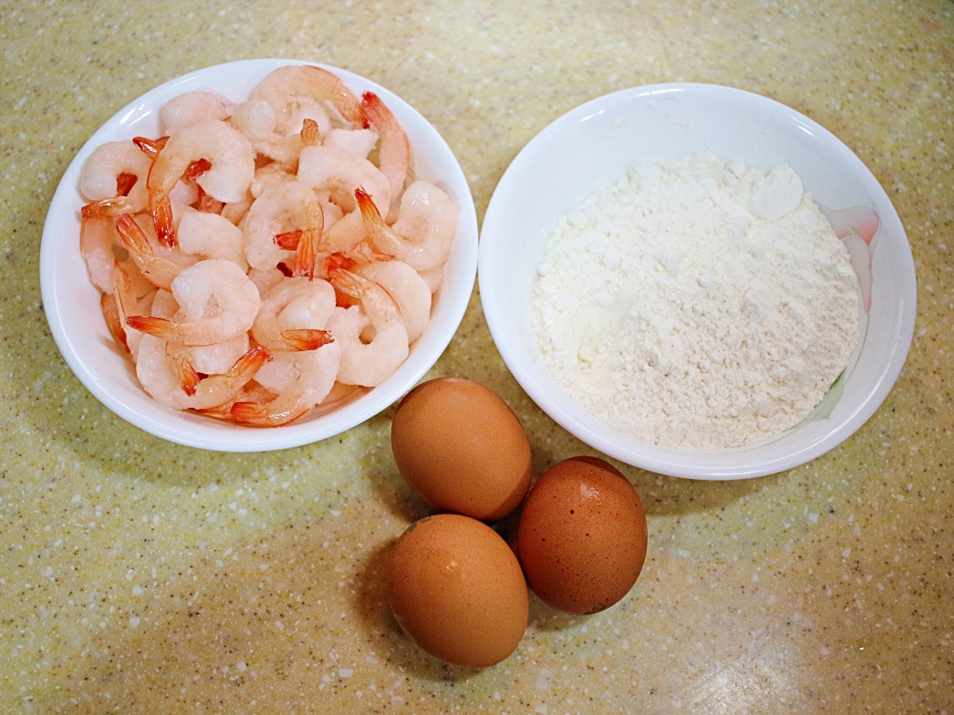 재료는 칵테일새우, 튀김가루, 계란 준비했어요.