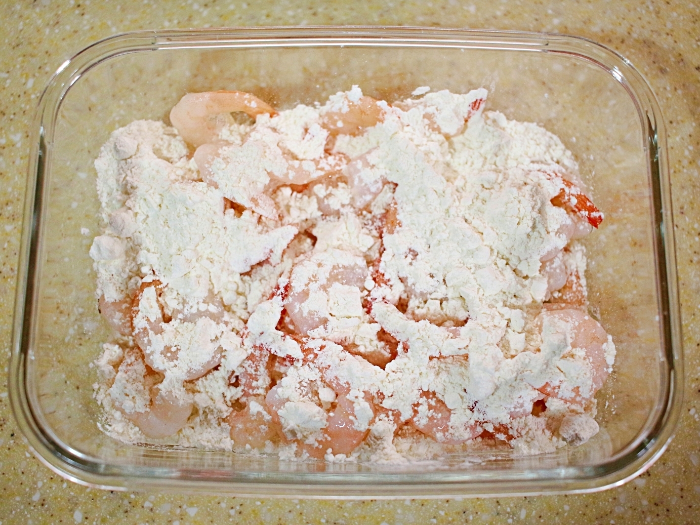 30초정도 흔들다보면 새우에 튀김옷이 골고루 입혀져요.