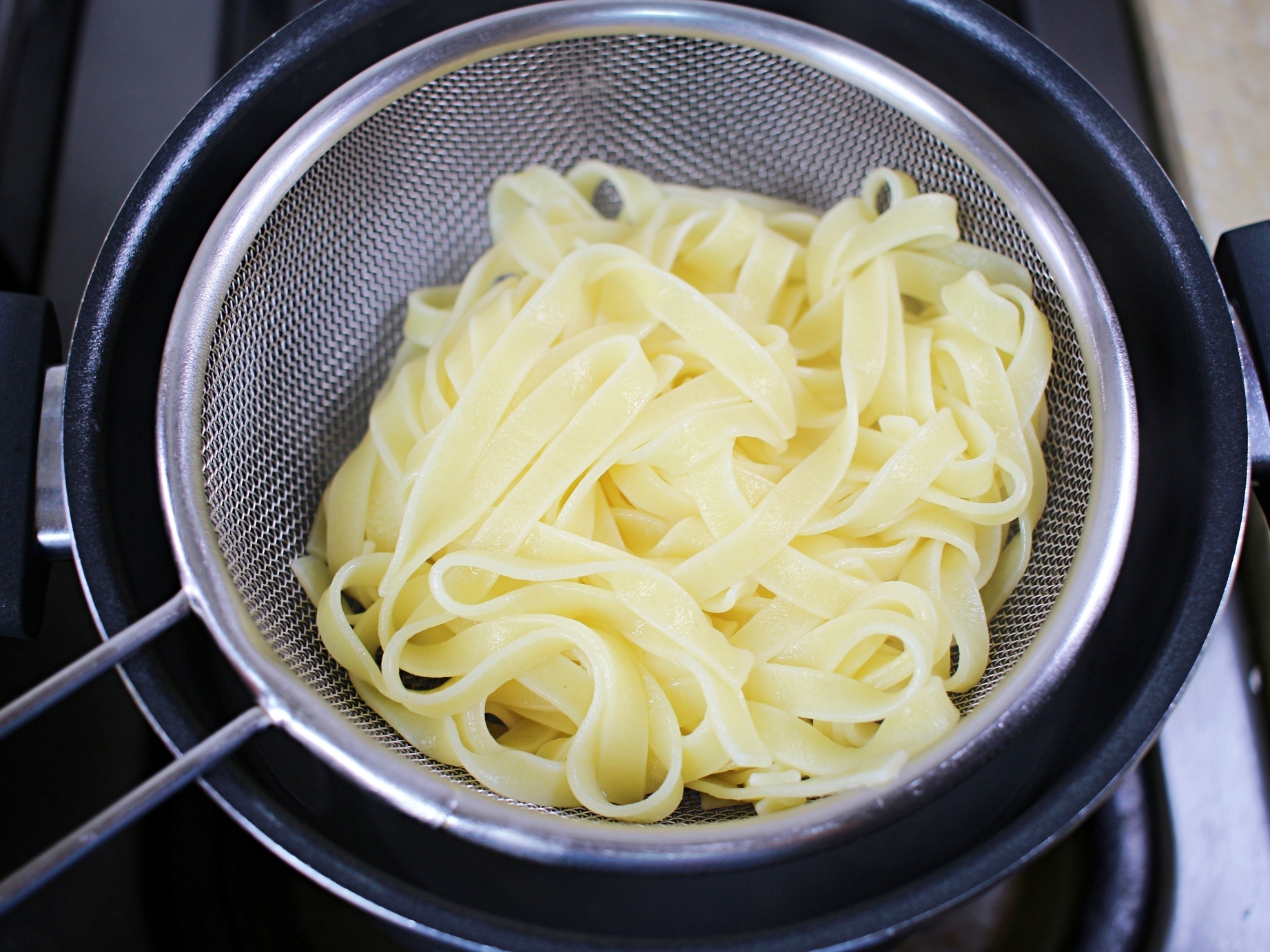 파스타면에 소스가 고르게 배면 조리 끝.