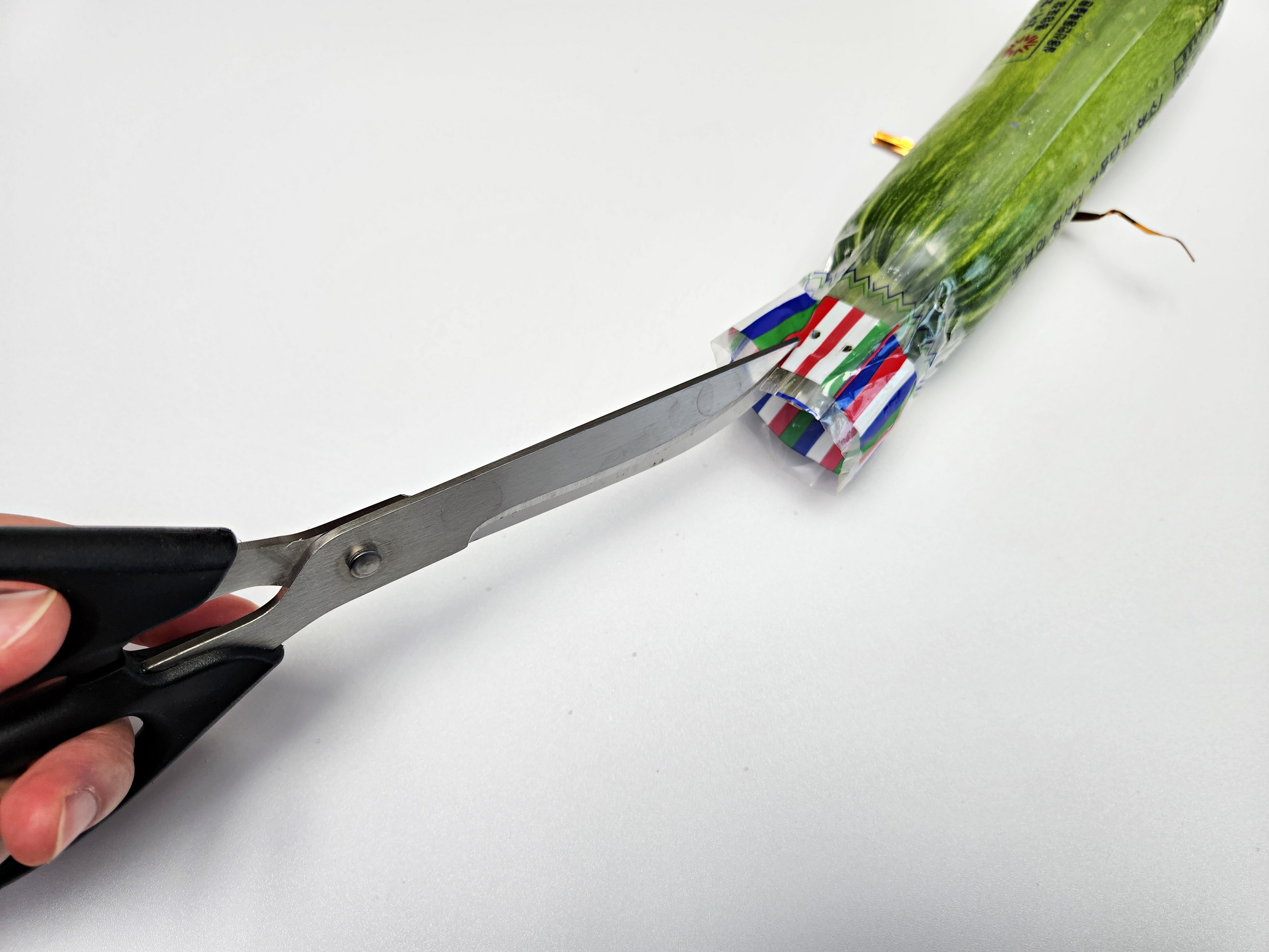 길쭉하게 튀어나온 부분을 가위로 잘라주세요.