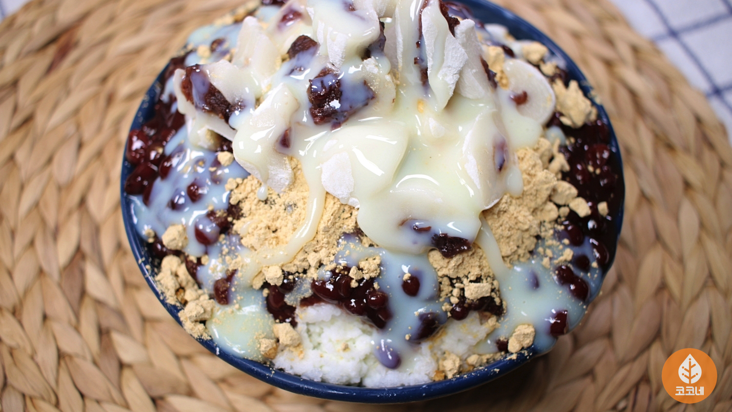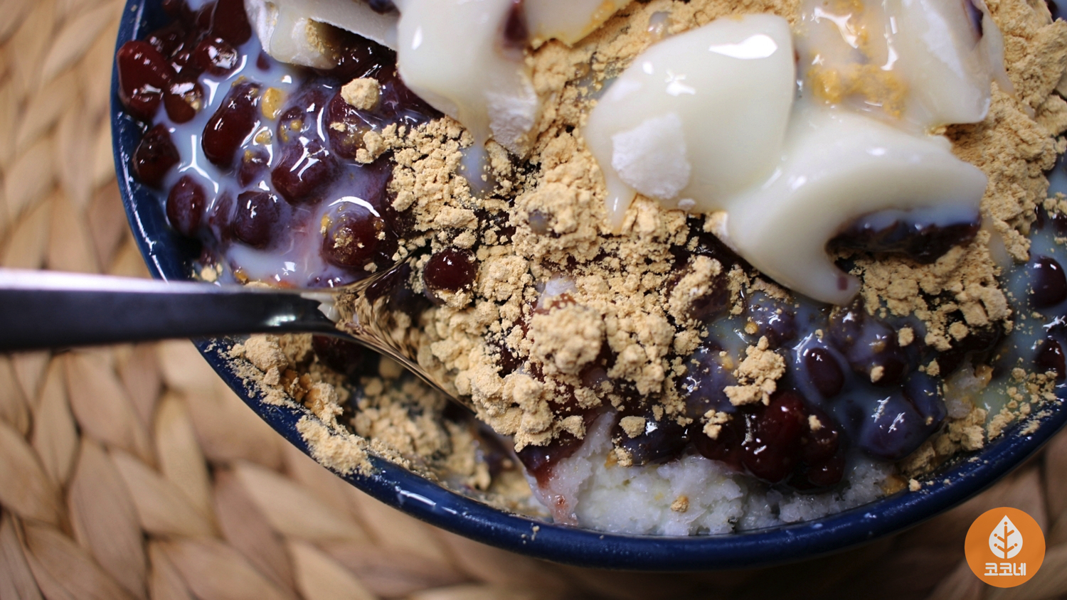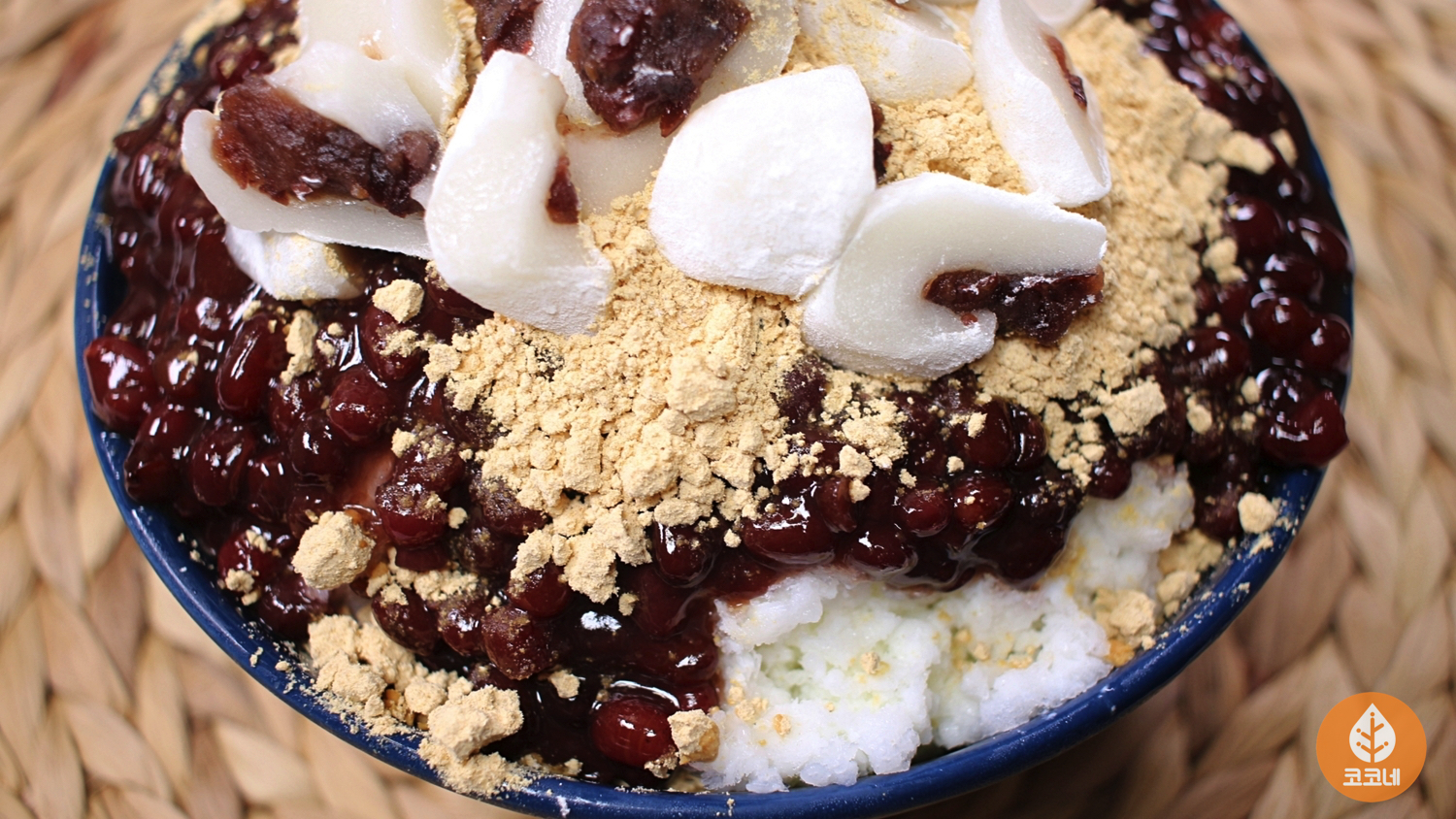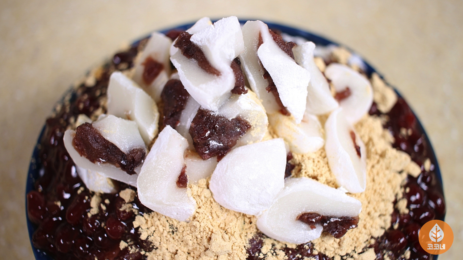 달달한 팥과 고소한 콩가루도 뿌려주시고요.