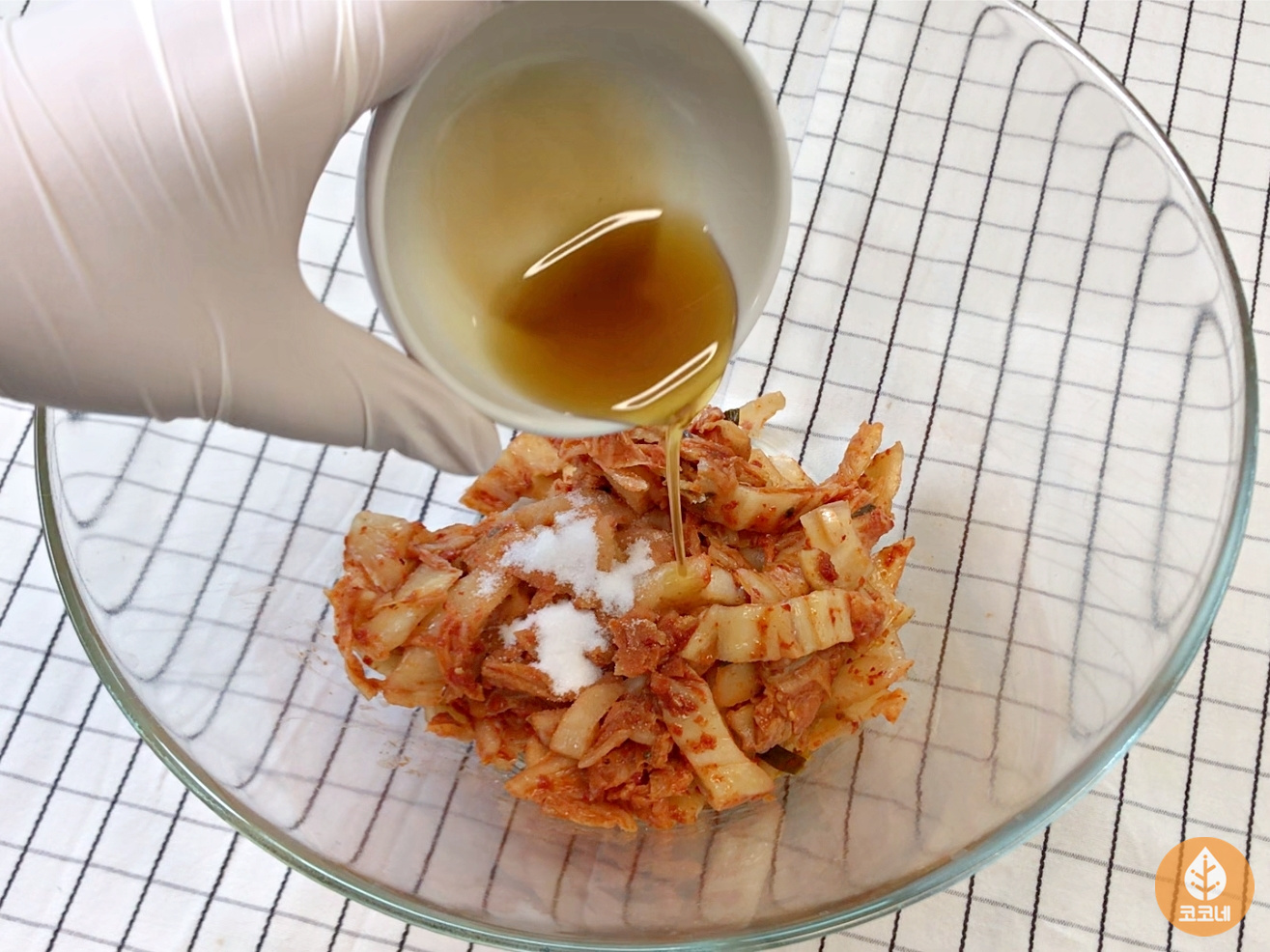 설탕 1숟가락, 참기름 두바퀴 둘러서 조물조물 무치면