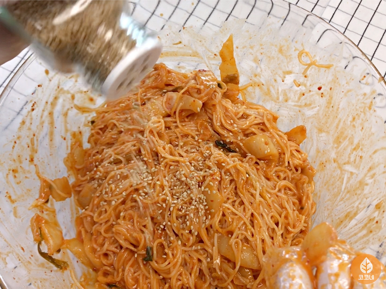 재료는 소면과 잘 익은 김치면 충분하고요.