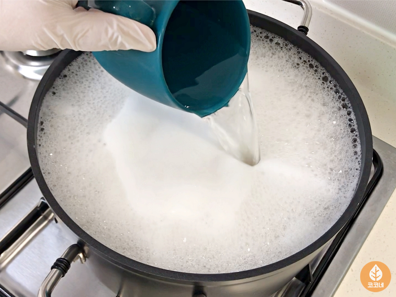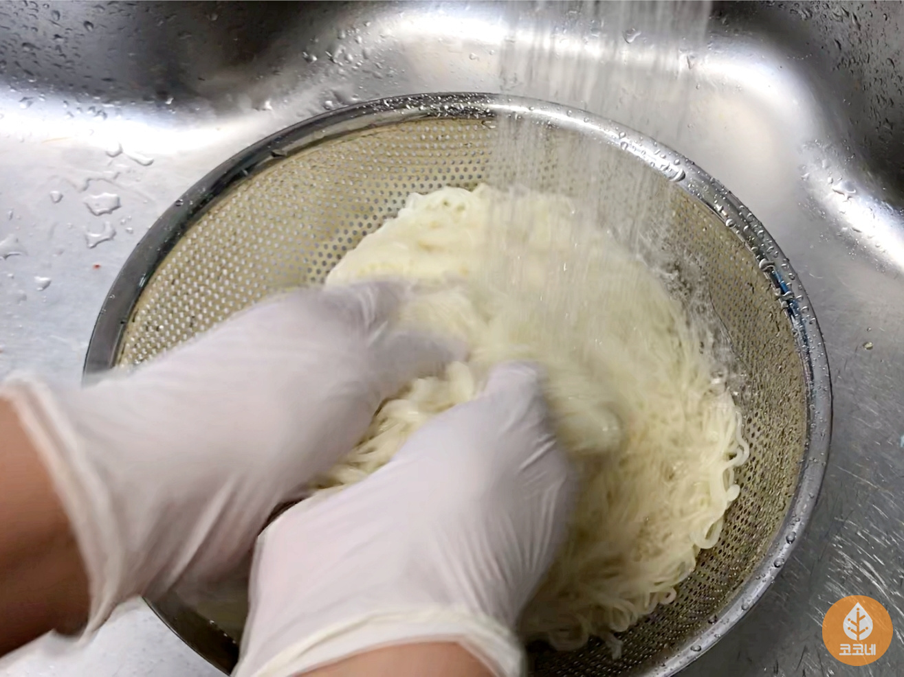 충분히 헹궈야 밀가루 냄새가 안나고요.