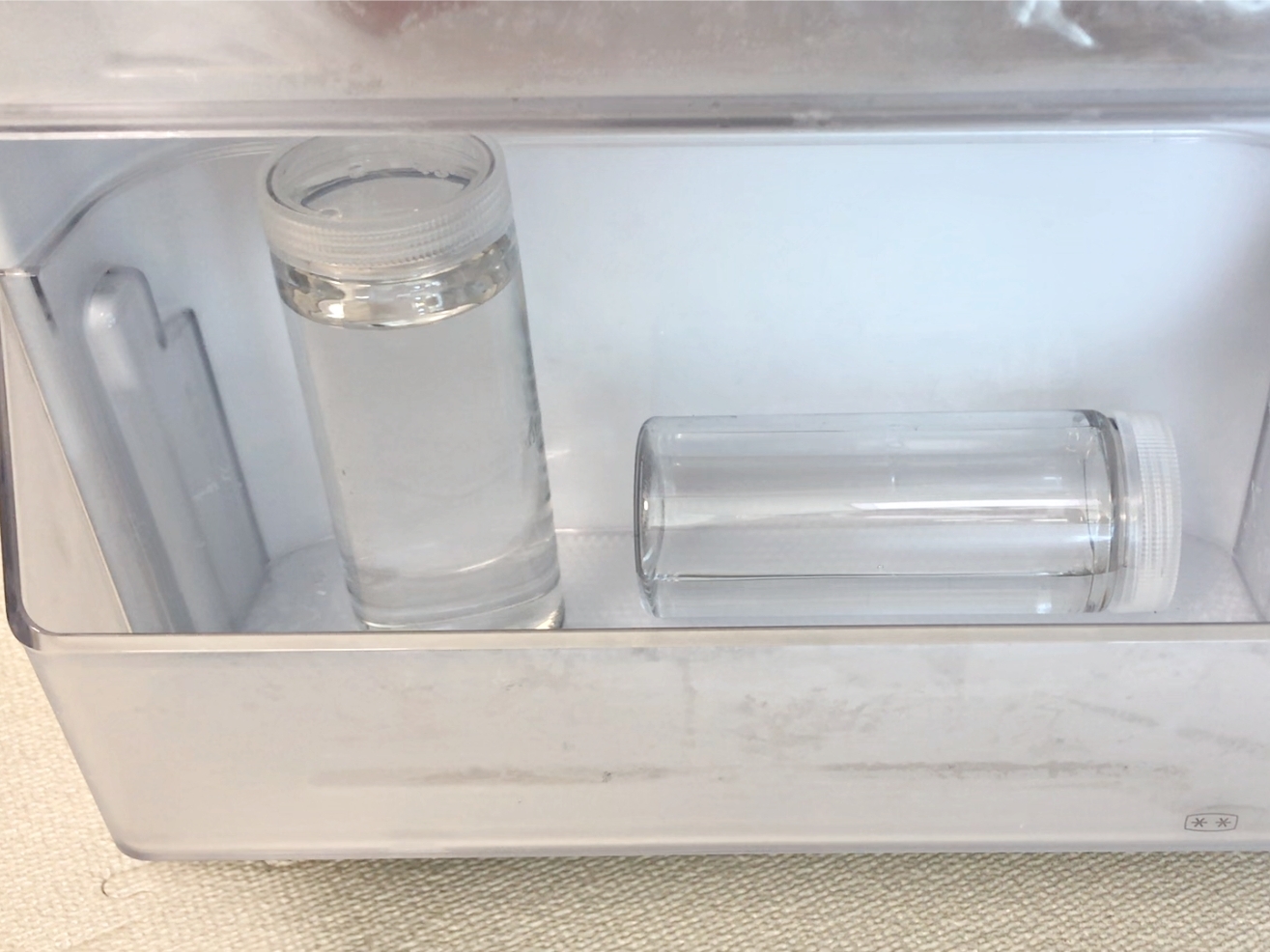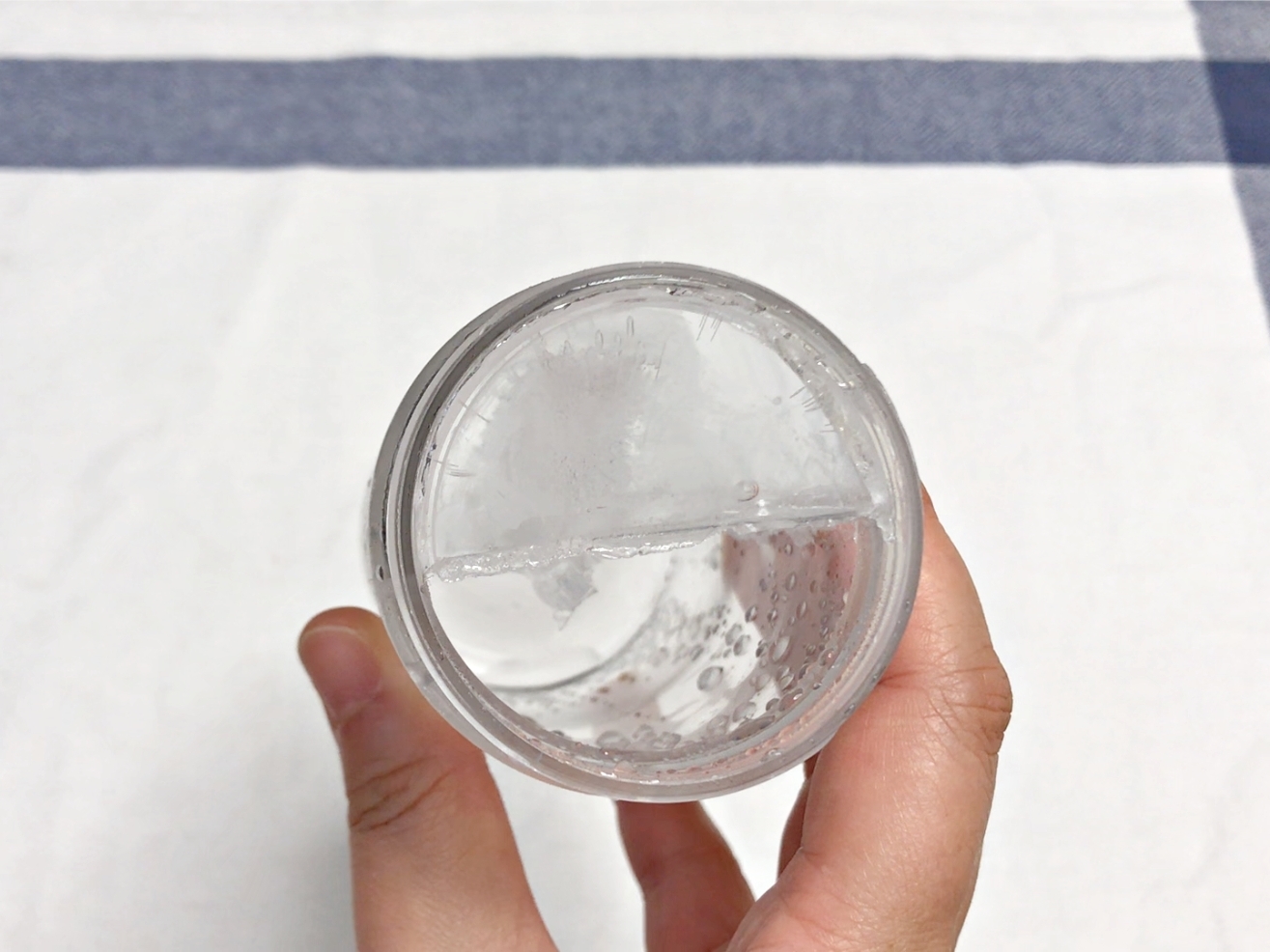 그럴땐 물통에 물을 반만 채워 눕혀서 얼려보세요.