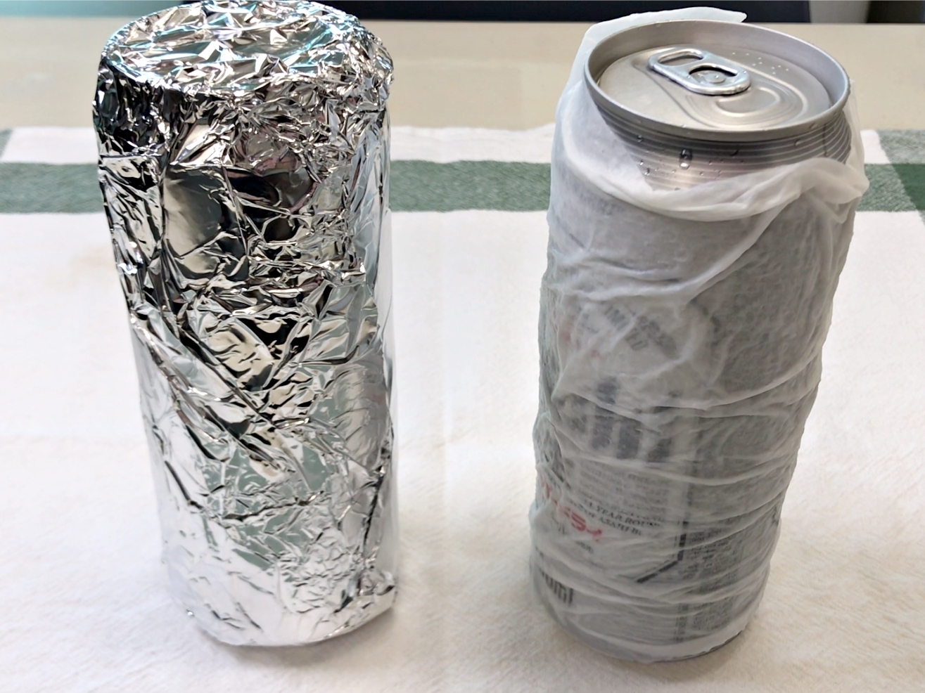 쿠킹호일이나 물에 적신 키친타월로 음료를 감싸 냉장실,