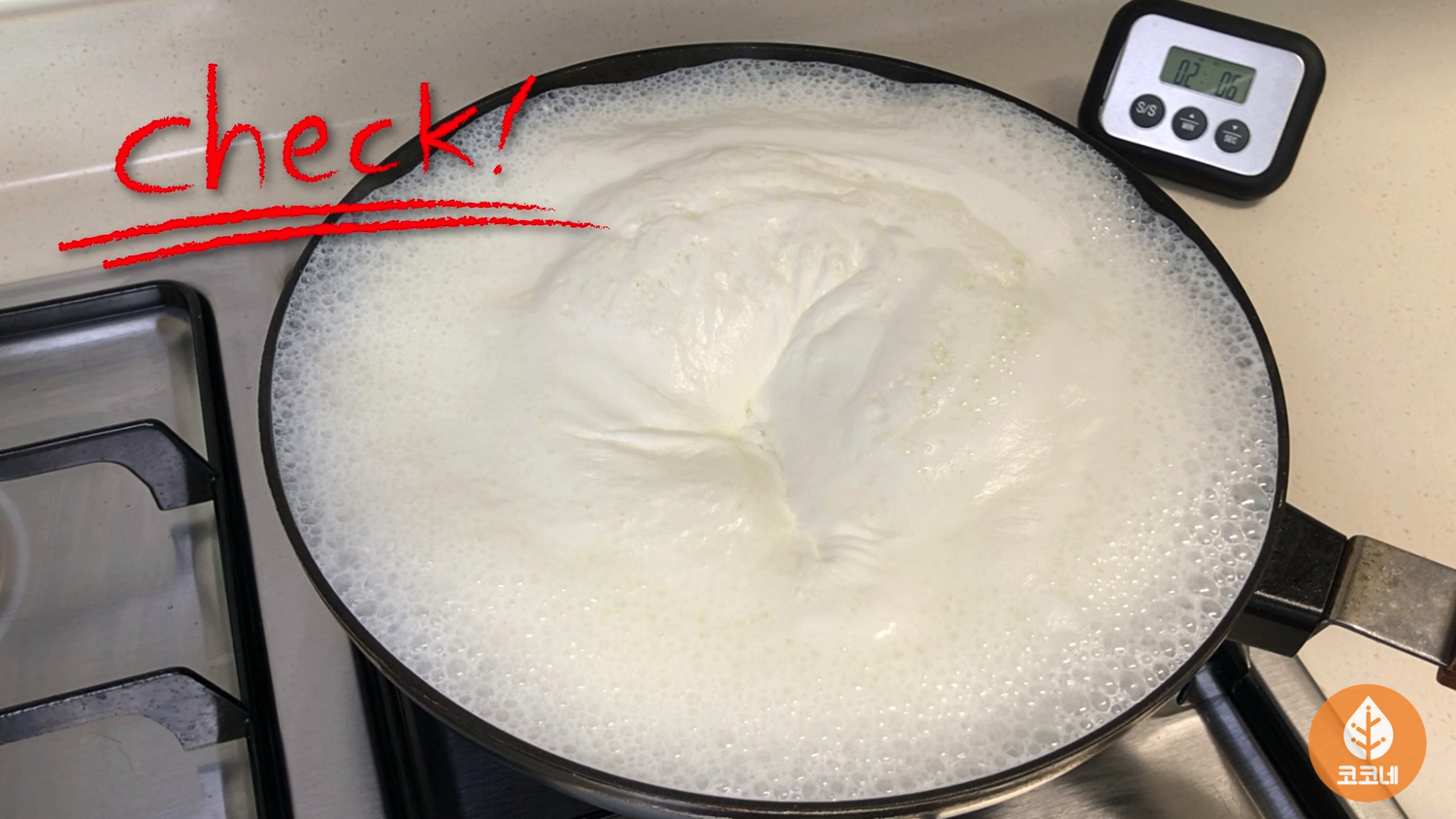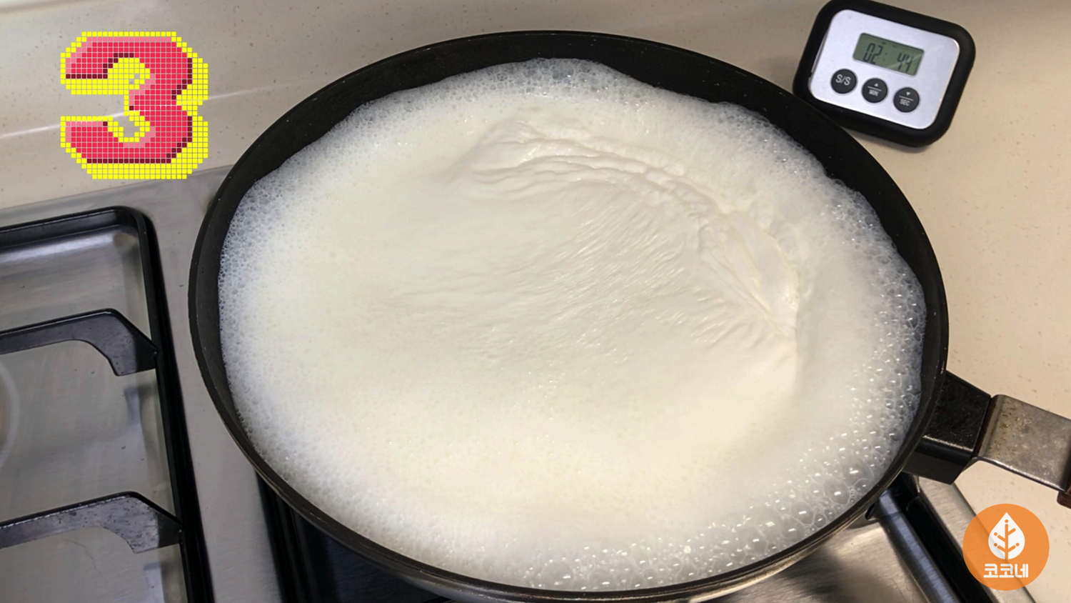 우유가 끓기 시작한 후로 3분정도 끓여주세요.