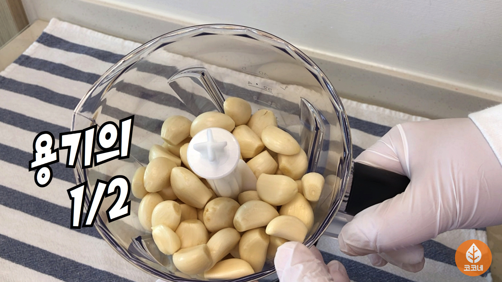 용기의 반정도만 마늘을 채워주시고요.