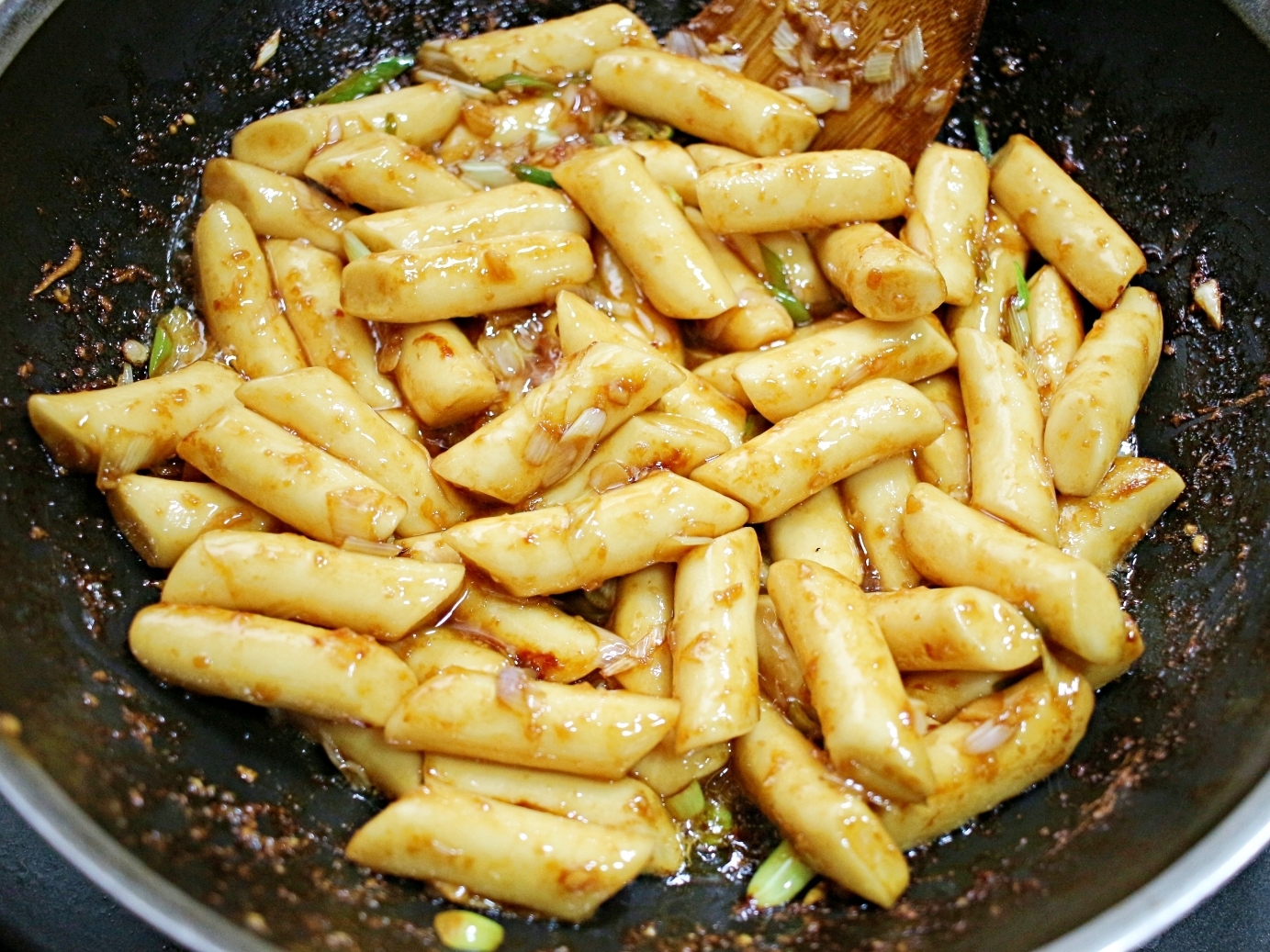 양념한 떡을 넣어 강불에서 볶아주세요.