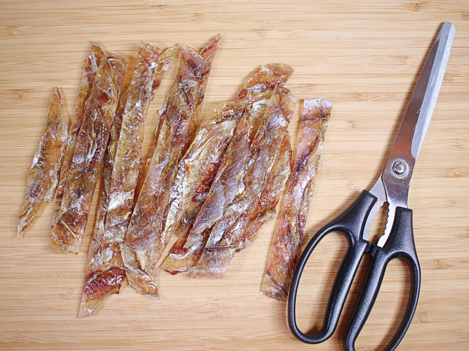 쥐포는 가위로 길쭉하게 잘라주세요.