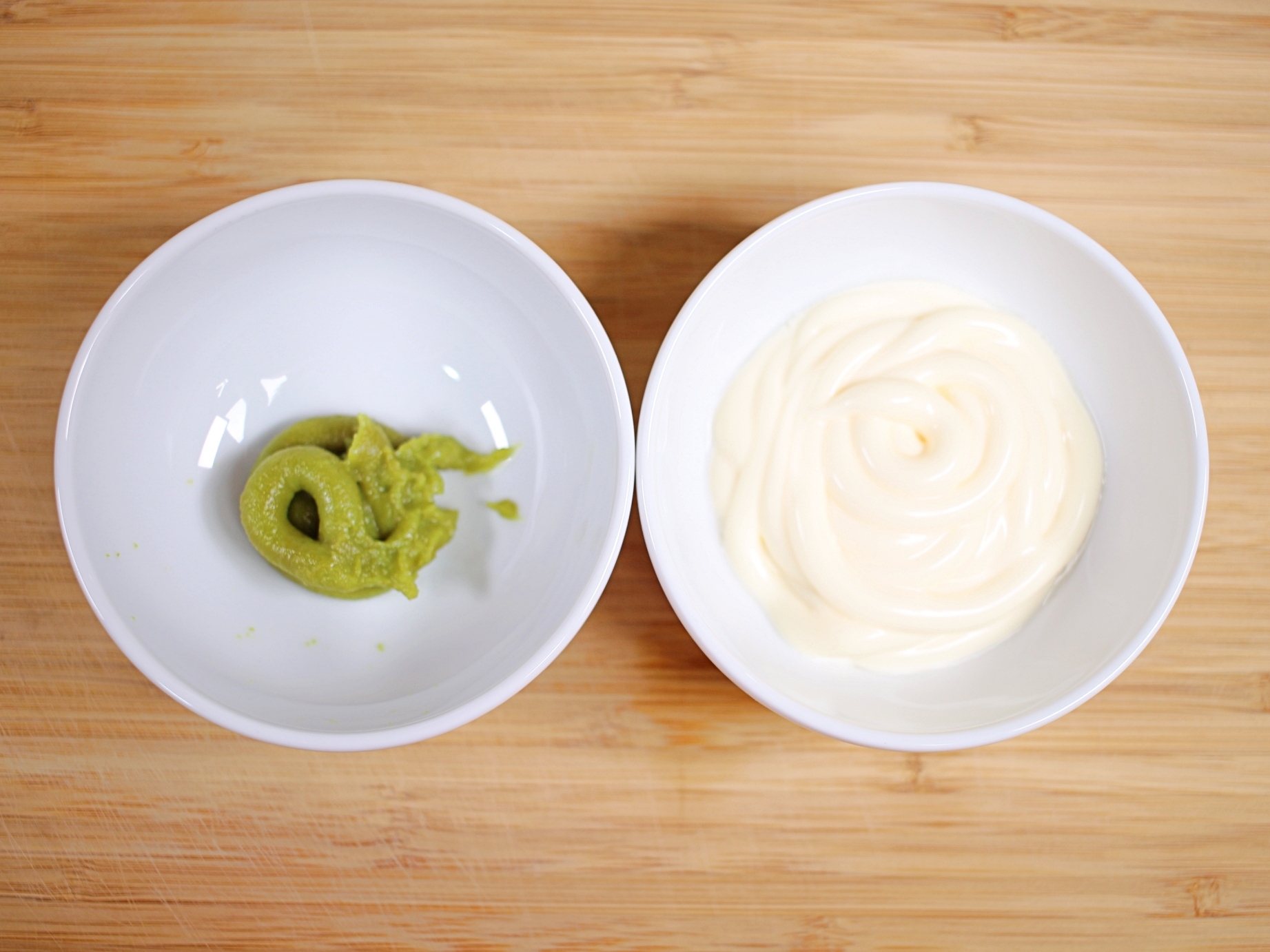 마요네즈 2큰술에 고추냉이 1티스푼을 넣고 잘 섞어주면