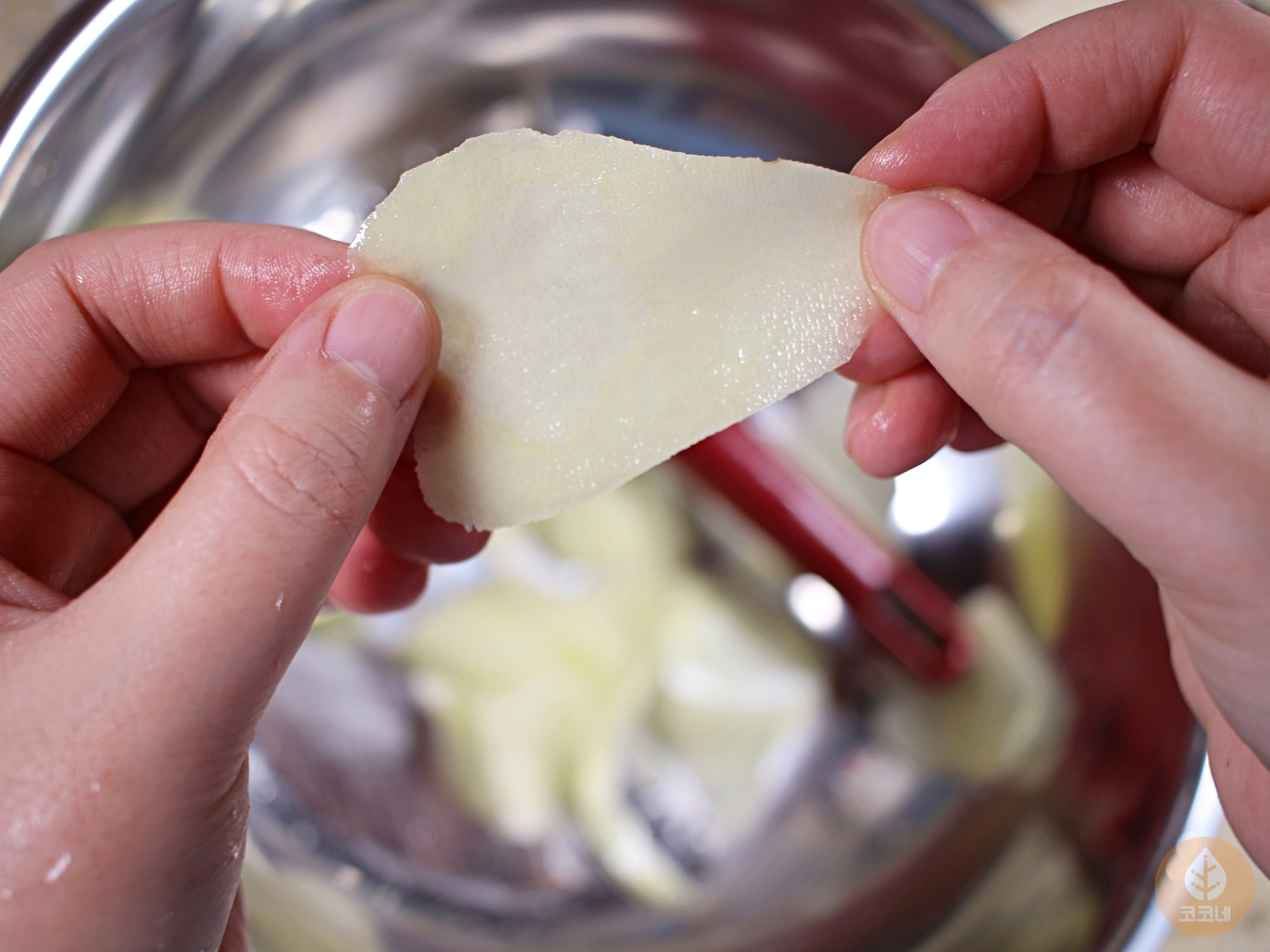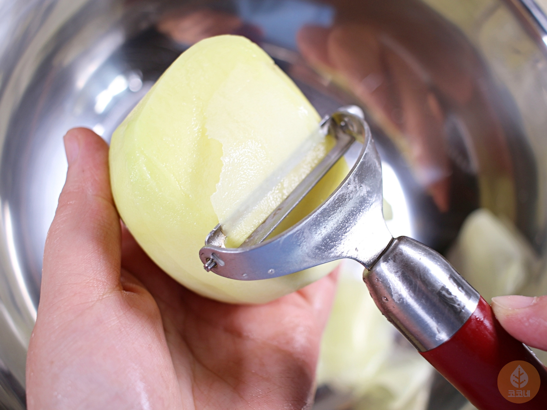 감자 깨끗하게 씻어서 껍질을 벗겨주시고요.
